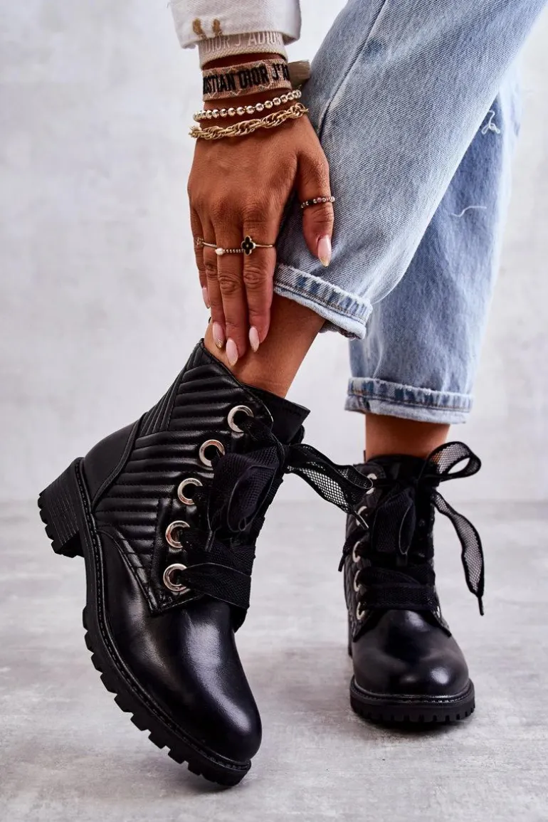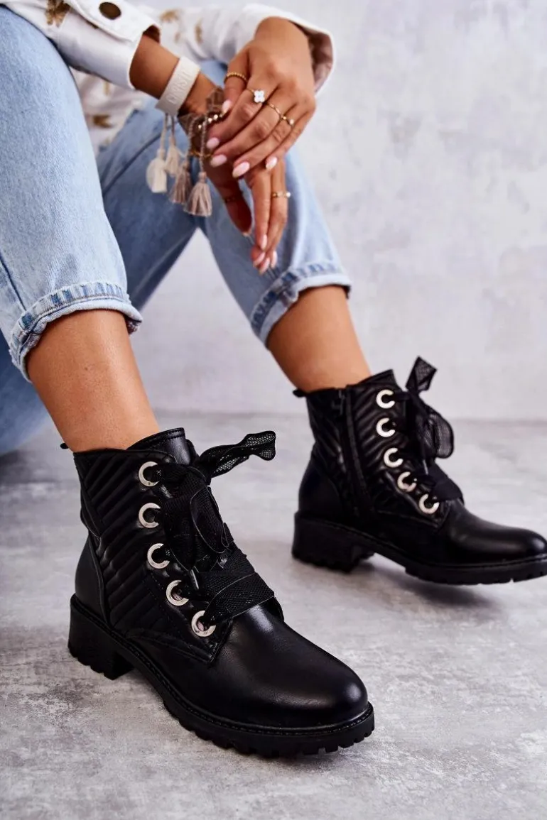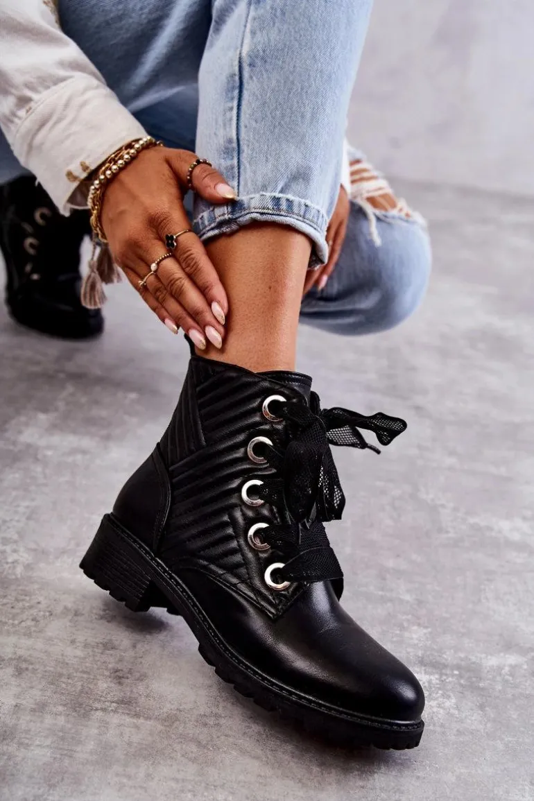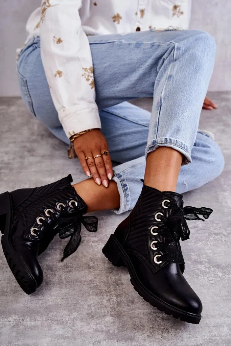 Skórzane Pikowane Botki Z Ociepleniem Czarne Torino