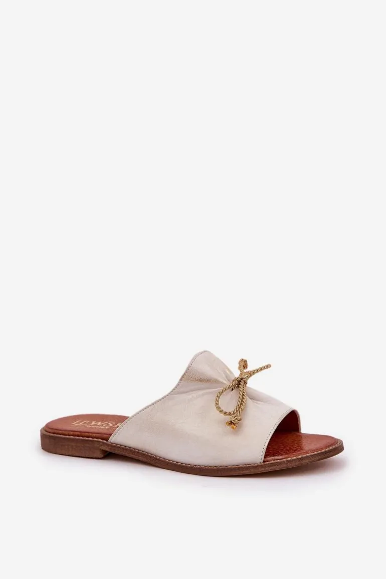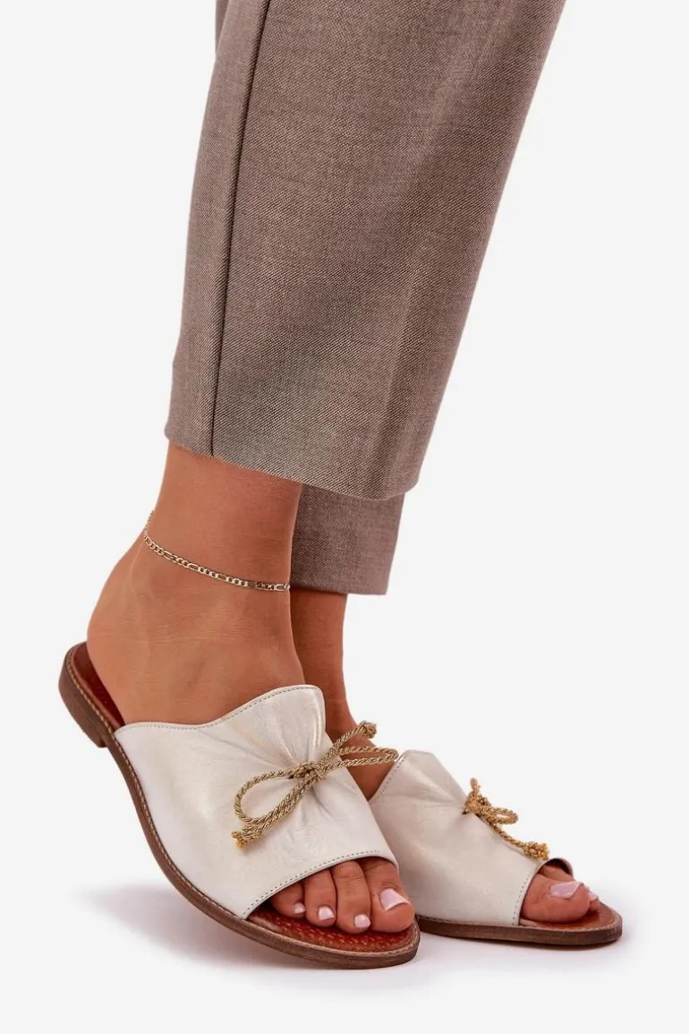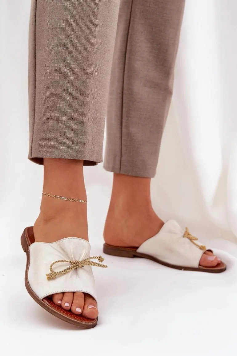 Eleganckie klapki z naturalnej skóry to subtelna propozycja, która łączy wygodę z elegancją. Osadzone na płaskim obcasie, zapewniają komfort przez cały dzień. Delikatne marszczenie na cholewce oraz urocza kokardka dodają im kobiecego uroku. Te klapki będą doskonałym wyborem na letnie dni, idealnie komponując się z lekkimi sukienkami czy casualowymi stylizacjami. Przy wyborze rozmiaru prosimy sugerować się tabelą rozmiarów.