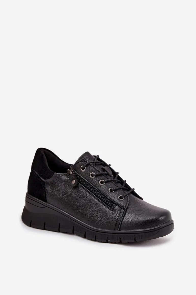 Półbuty damskie marki Vinceza wykonane z naturalnej skóry. Osadzone na koturnie, który dodaje kilka centymetrów i zapewnia stabilność. Model posiada sznurowania oraz zamek błyskawiczny z boku cholewki, co ułatwia idealne dopasowanie i szybkie zakładanie. Skórzana wkładka gwarantuje komfort noszenia przez cały dzień. Te półbuty to stylowy wybór do codziennych, jak i bardziej eleganckich stylizacji. Przy wyborze rozmiaru prosimy sugerować się tabelą rozmiarów.