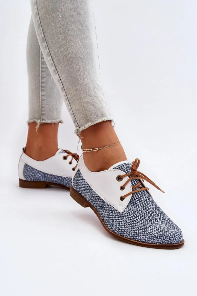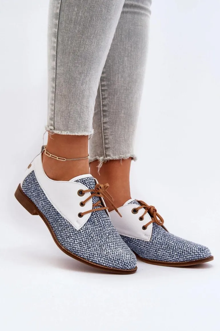 Półbuty damskie wykonane z wysokiej jakości skóry naturalnej i tkaniny prezentują się niezwykle efektownie. Osadzone na płaskim, stabilnym obcasie. Zaokrąglone noski dodają delikatności, a klasyczne sznurowanie gwarantuje idealne dopasowanie do stopy. Te półbuty nie tylko podkreślą Twój indywidualny styl, ale także zapewnią komfort noszenia na każdym kroku. Przy wyborze rozmiaru prosimy sugerować się tabelą rozmiarów.