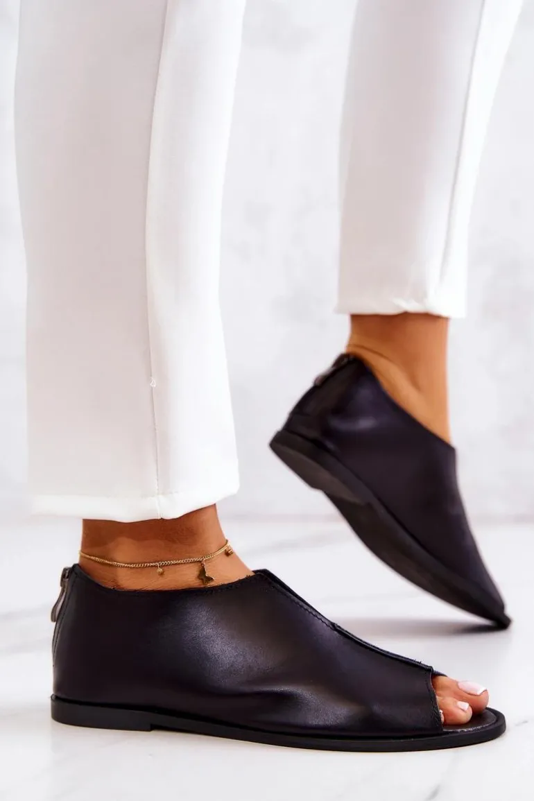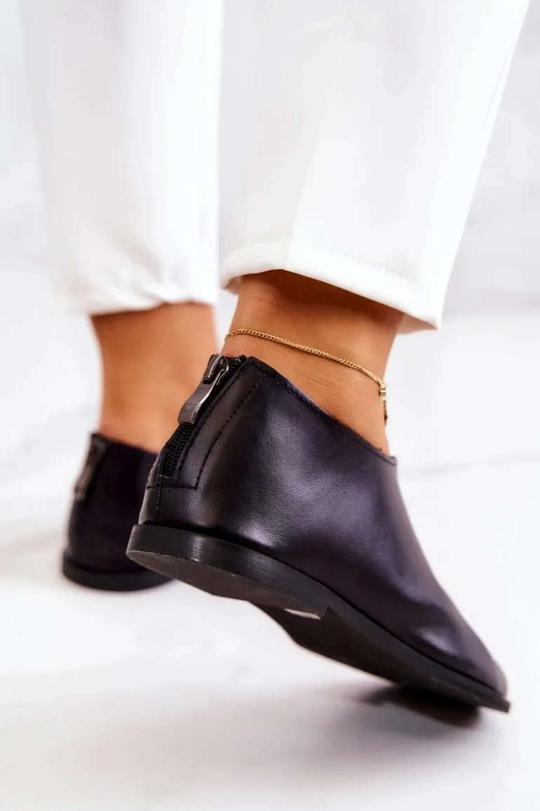 Skórzane Półbuty Na Suwak Nicole 2718/001 Czarne