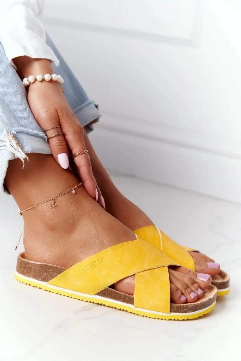 Klapki na korkowej podeszwie od polskiej marki BIG STAR. Buty posiadają profilowaną wkładkę ze skóry naturalnej, która zagwarantuje komfort. Modny fason, który pasuje do wszystkiego! Przy wyborze rozmiaru prosimy sugerować się tabelą rozmiarów.