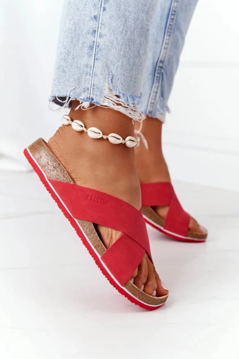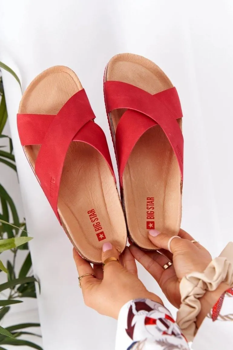 Skórzane Profilowane Klapki Big Star HH274598 Czerwone