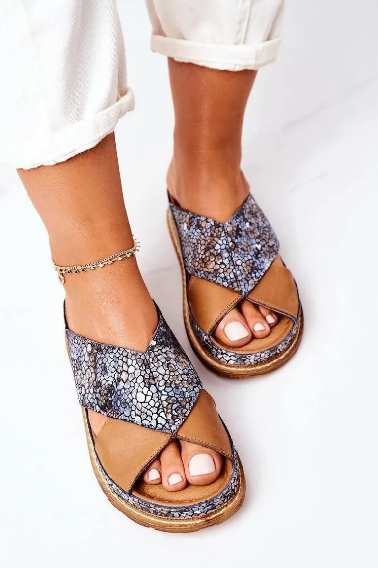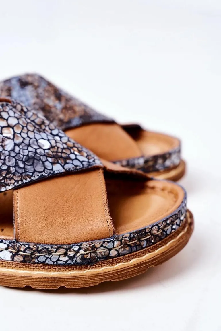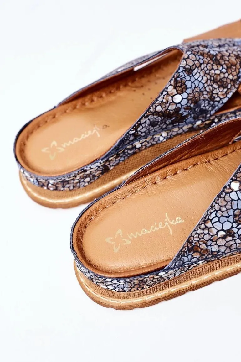 Skórzane Profilowane Klapki Maciejka 04986-02 Brązowe