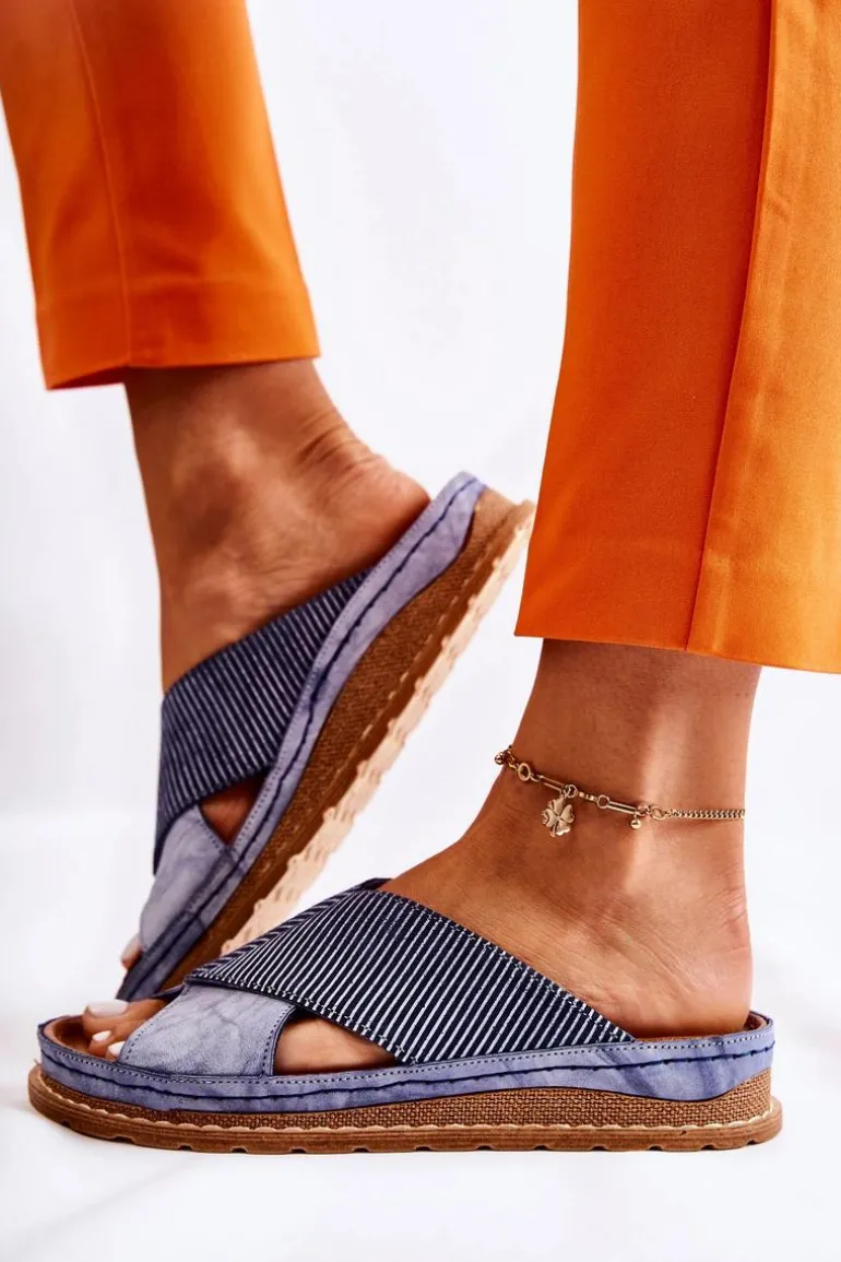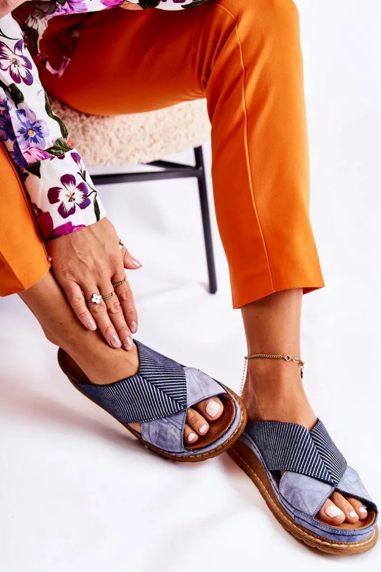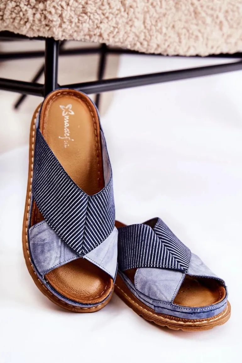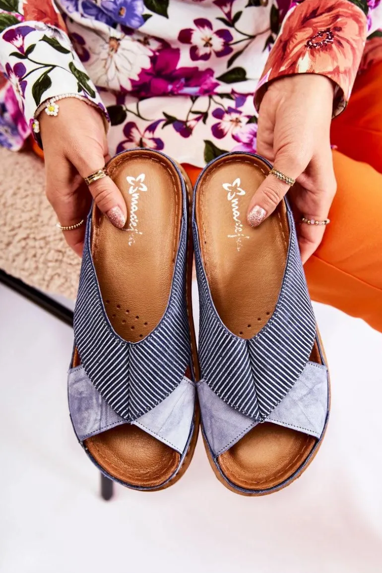 Skórzane Profilowane Klapki Maciejka 04986-17 Niebieskie