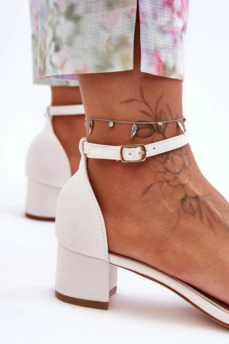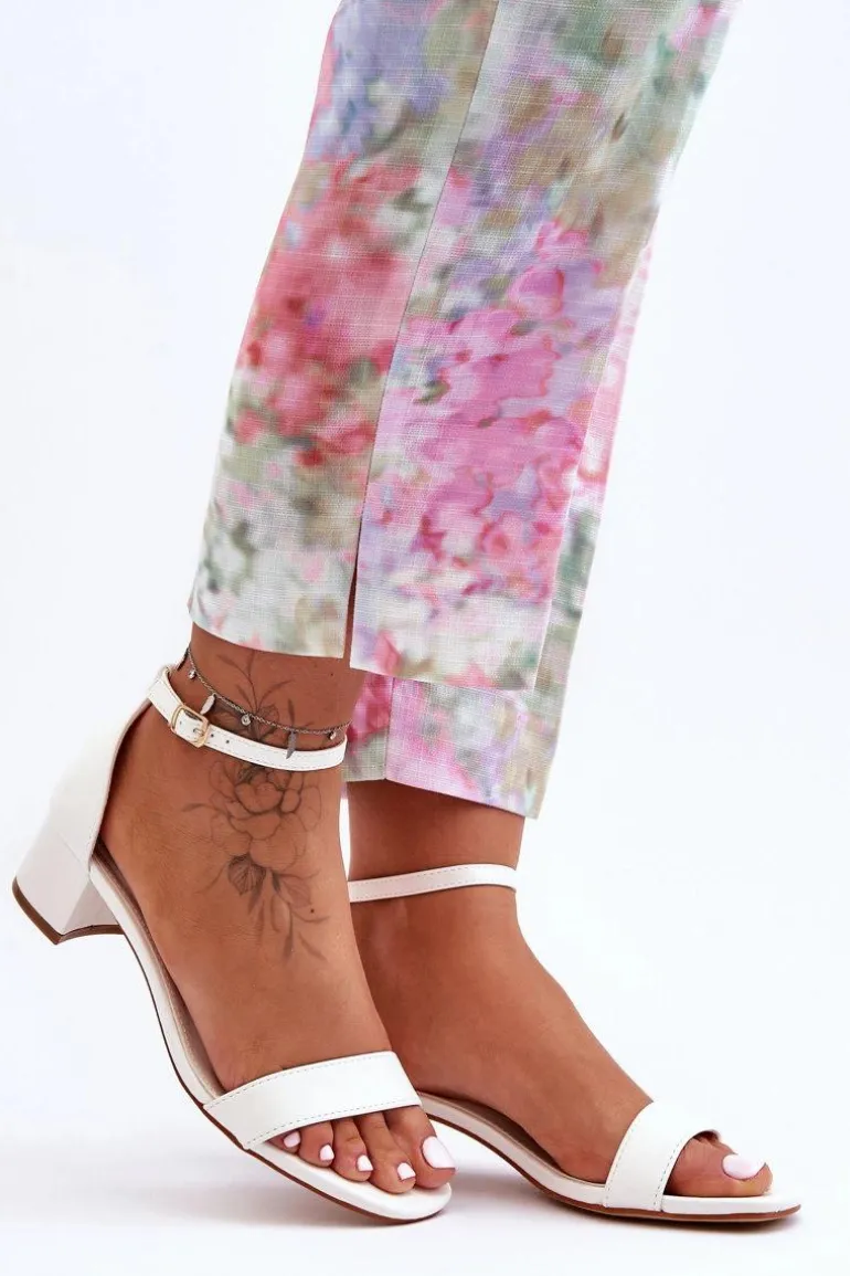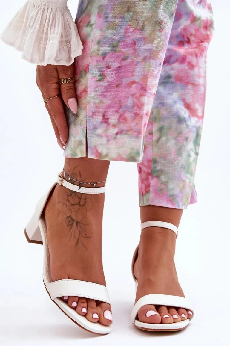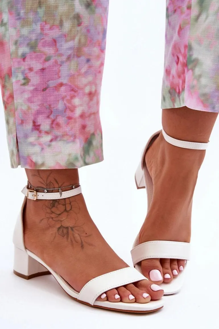 Skórzane Sandałki Na Obcasie Gładkie Białe Inspire Me!