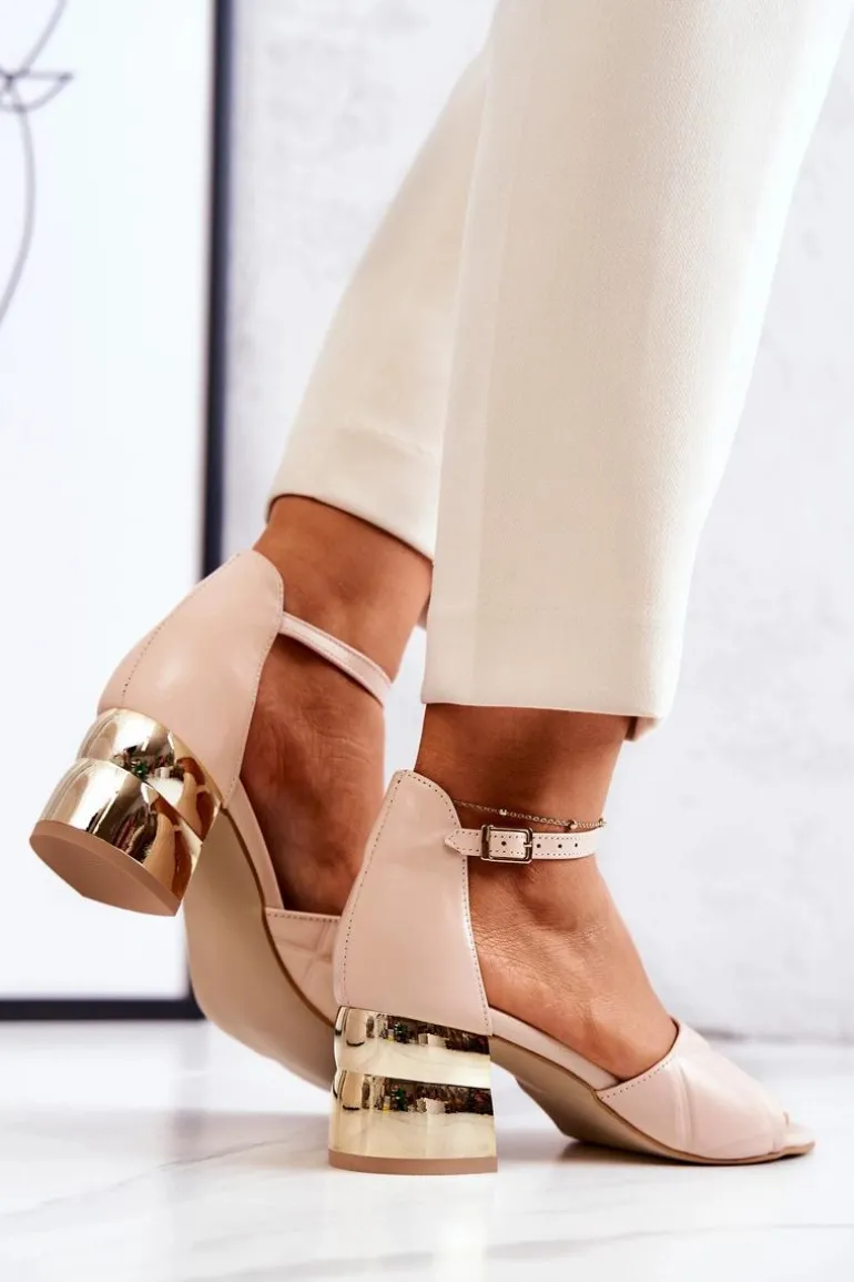 Skórzane Sandałki Na Słupku Lewski 3027 Beżowe