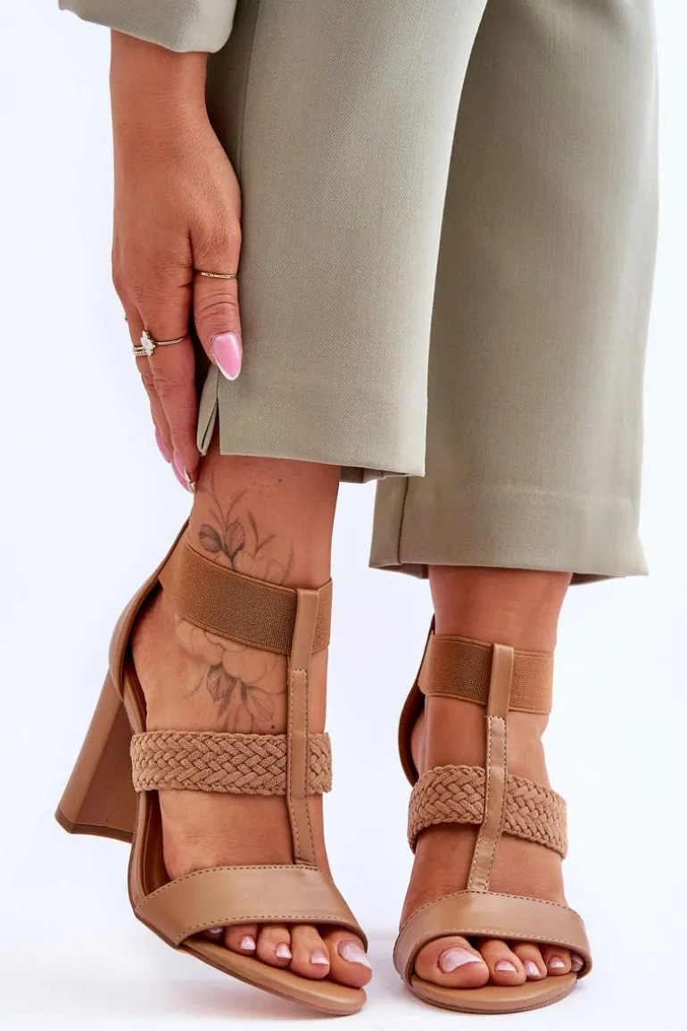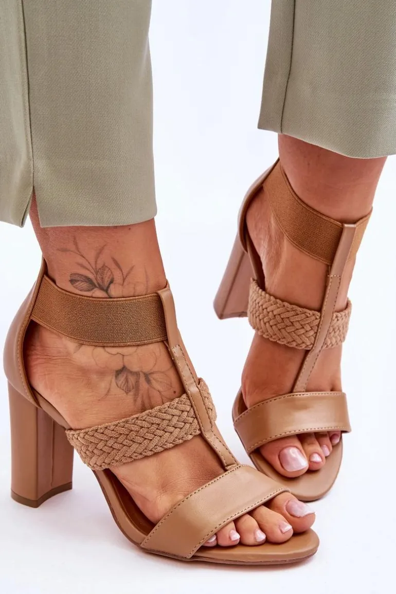 Damskie sandałki o fasonie botków świetnie sprawdzą się w cieplejsze dni. Model ten został wykonany z eko skóry. Zostały osadzone na stabilnym obcasie w postaci słupka. Sandałki posiadają na środku pleciony pasek oraz u góry gumkę pozwalającą na odpowiednie dopasowanie do tęgości nogi. Buty te posiadają miękką wkładkę. Przy wyborze rozmiaru prosimy sugerować się tabelą rozmiarów.