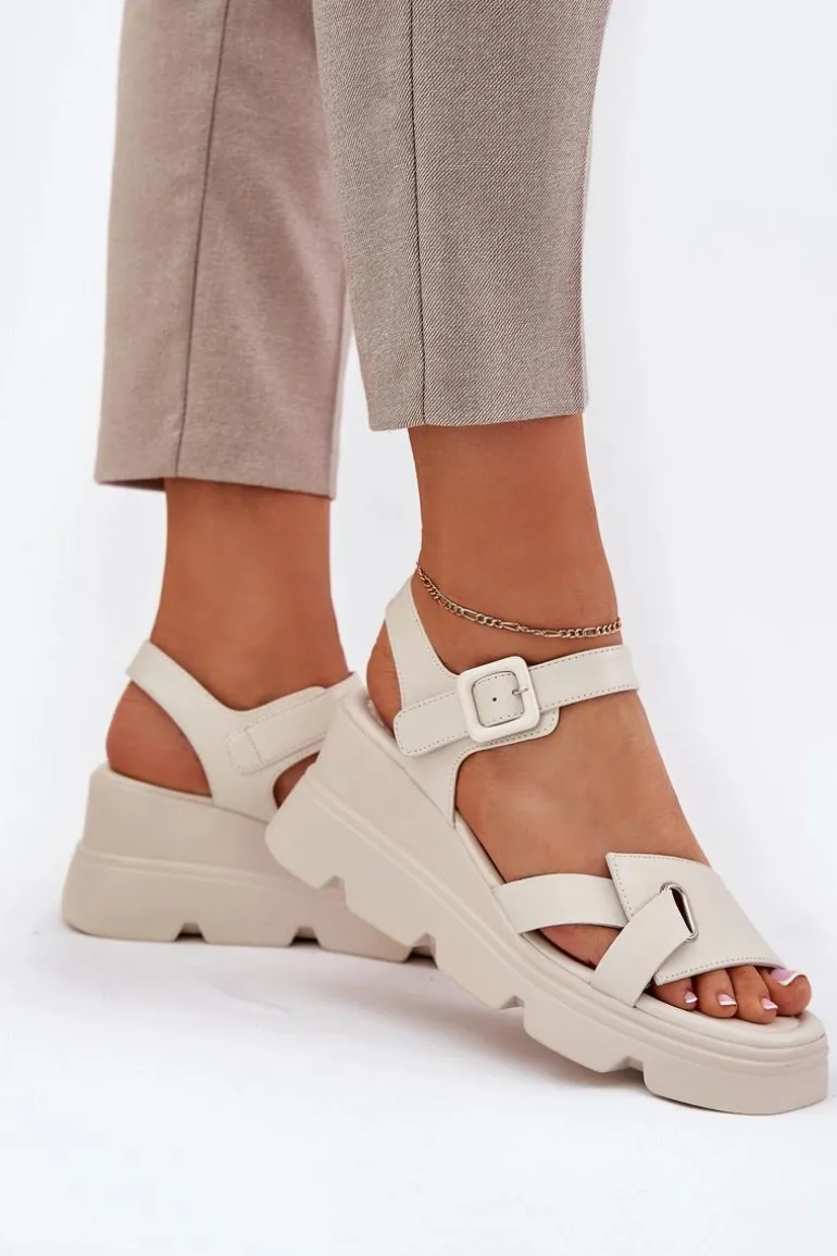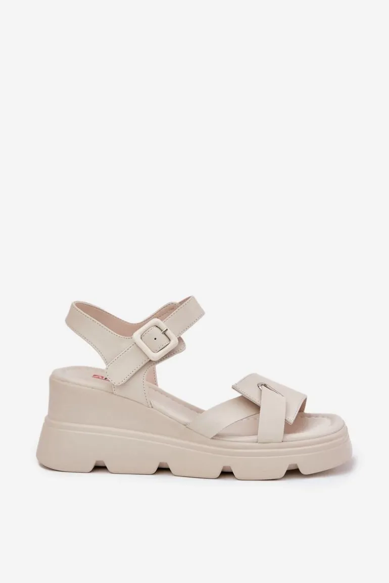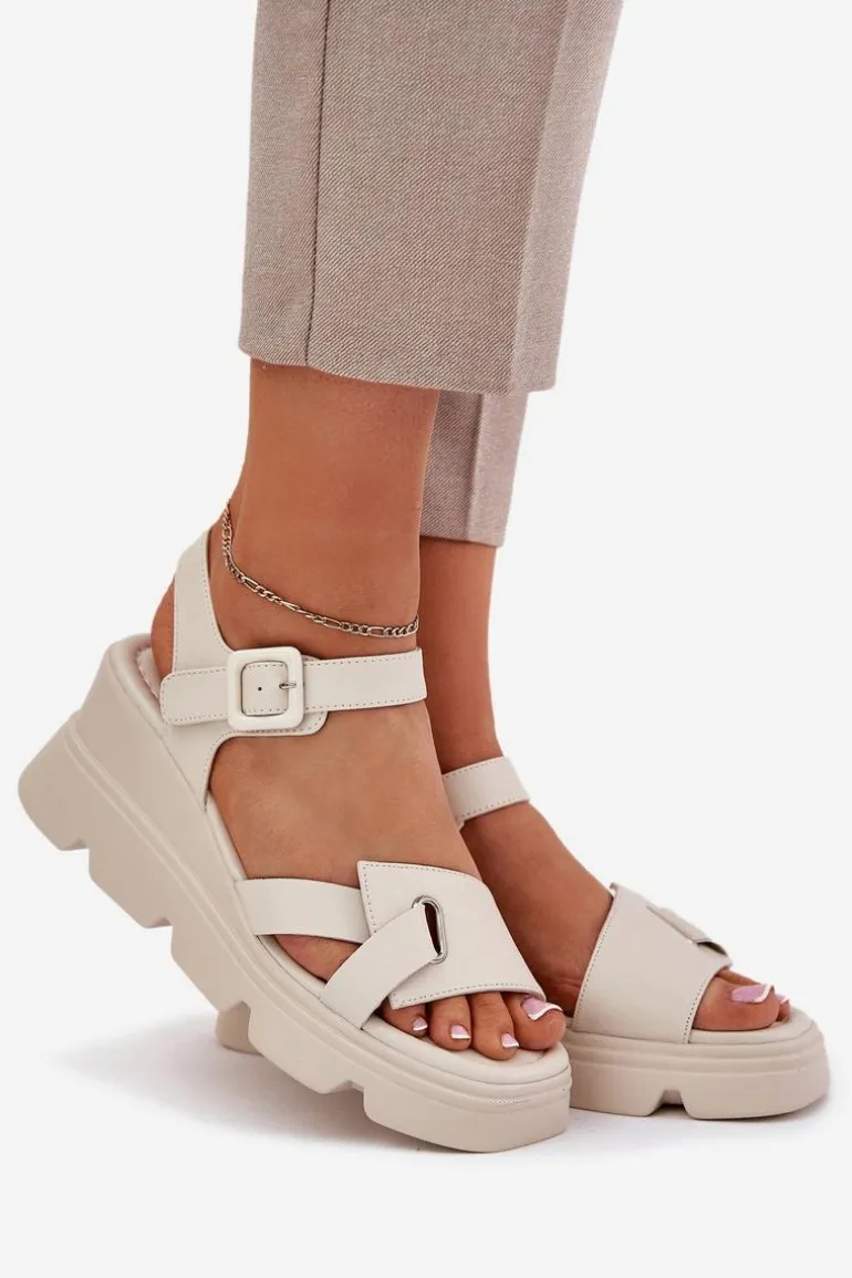 Damskie sandały z naturalnej skóry to elegancka propozycja na ciepłe dni. Osadzone na koturnie, zapewniają komfort i stabilność przez cały dzień. Zapinane na klamrę z regulowanym paskiem, pozwalają na idealne dopasowanie do stopy. Miękka wkładka gwarantuje wygodę, a klasyczny fason sprawia, że te sandały będą doskonałym uzupełnieniem wielu letnich stylizacji. Idealne zarówno do codziennych, jak i bardziej eleganckich looków. Przy wyborze rozmiaru prosimy sugerować się tabelą rozmiarów.