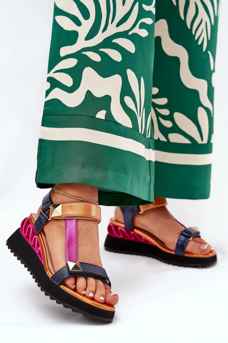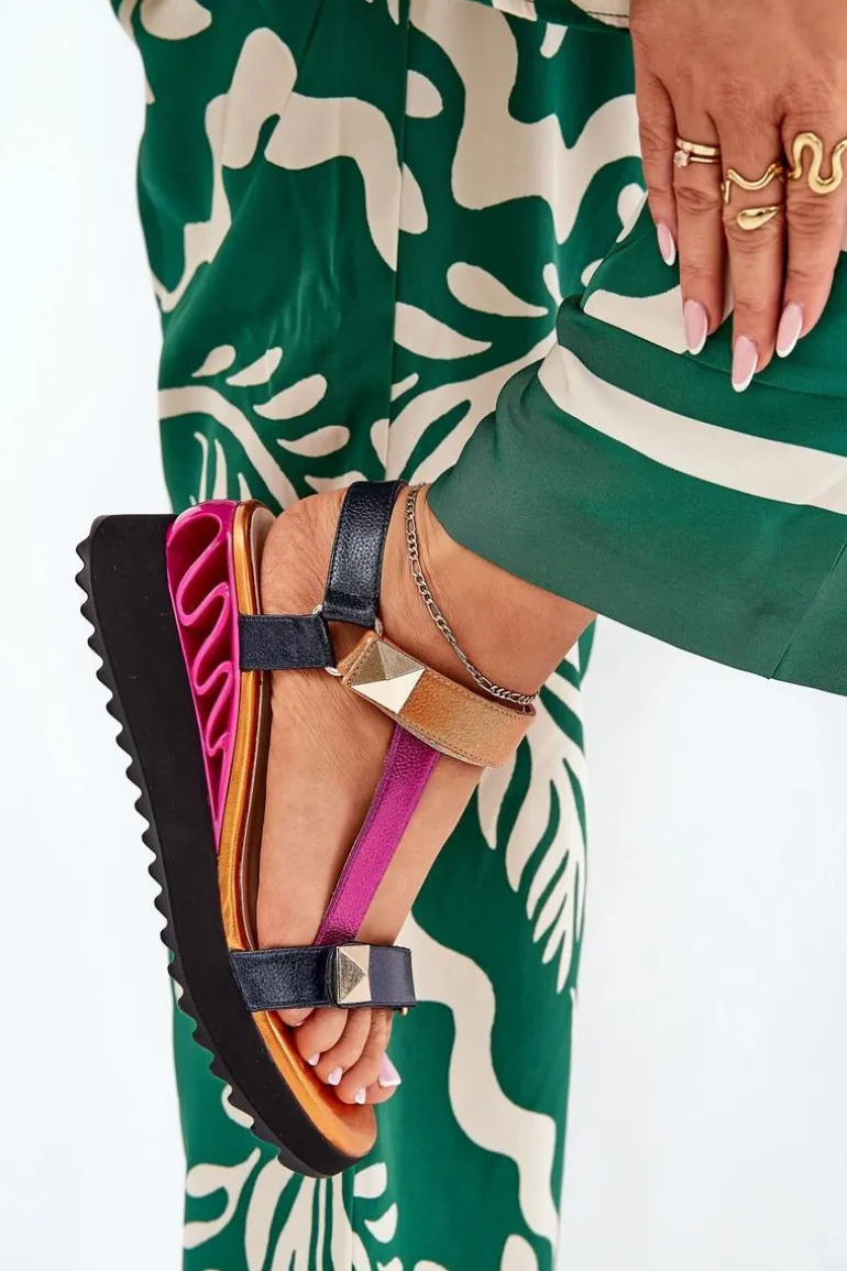 Damskie sandały na koturnie stanowią doskonały wybór na gorące letnie dni. Wykonane z naturalnej skóry. Dzięki praktycznemu zapięciu na rzep, ich zakładanie jest szybkie i proste. Wkładka wykonana z naturalnej skóry gwarantuje komfort noszenia przez cały dzień. Ten model łączy stylowy wygląd z wygodą i swobodą ruchu w każdej sytuacji. Przy wyborze rozmiaru prosimy sugerować się tabelą rozmiarów.