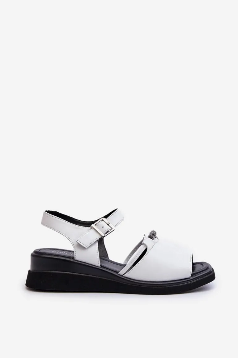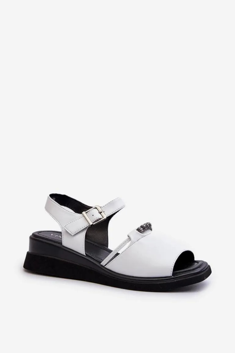 Skórzane Sandały Damskie Na Koturnie Vinceza 66624 Białe