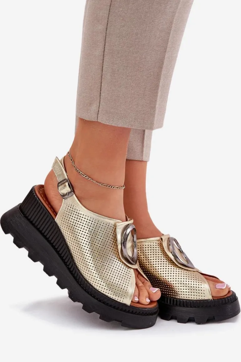 Eleganckie sandały damskie wykonane z naturalnej skóry to doskonała propozycja na ciepłe dni. Osadzone na koturnie, zapewniają wygodę oraz stabilność przez cały dzień. Model wyróżnia się ozdobą z przodu, która nadaje im wyjątkowego charakteru. Skórzana wkładka gwarantuje komfort, a podeszwa z bieżnikiem zapewnia odpowiednią przyczepność, sprawiając, że te sandały łączą elegancję z funkcjonalnością. Idealne do letnich stylizacji, zarówno na co dzień, jak i na specjalne okazje. Przy wyborze rozmiaru prosimy sugerować się tabelą rozmiarów.