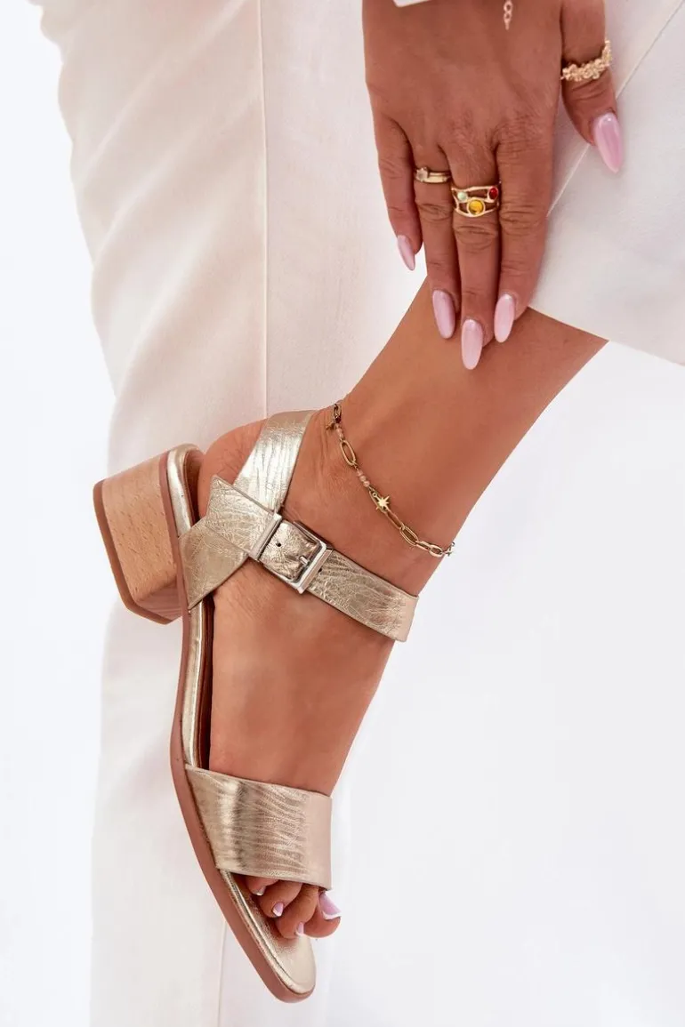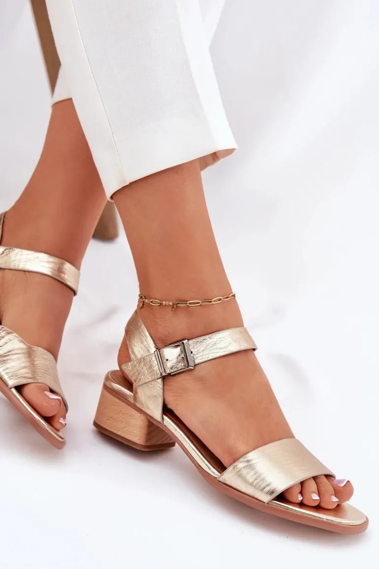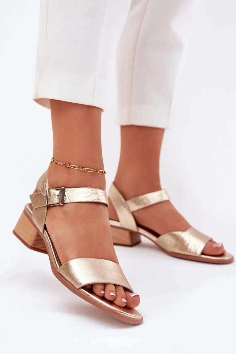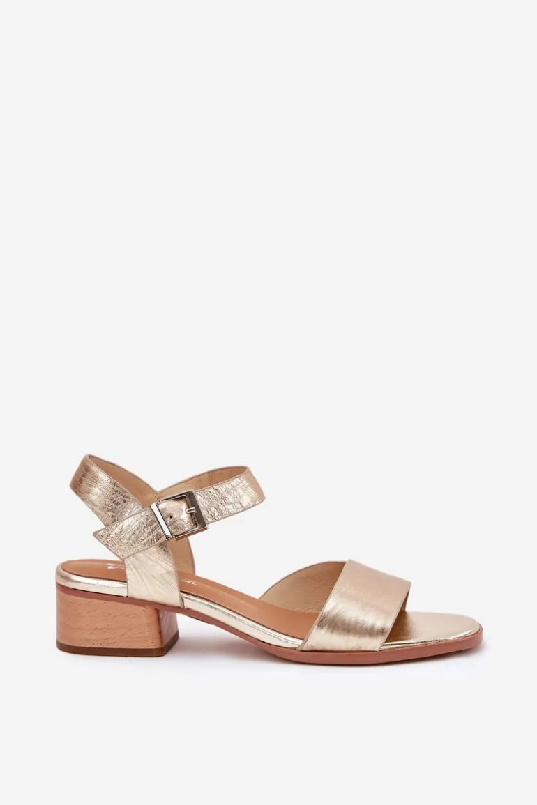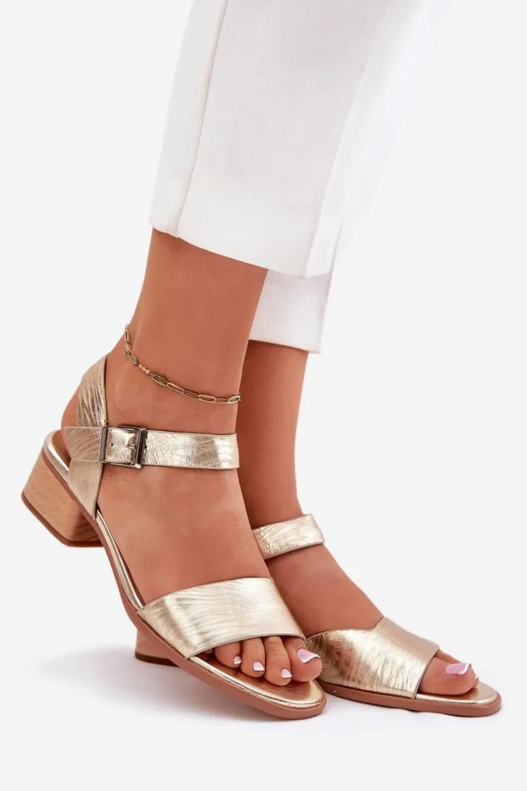 Skórzane Sandały Damskie Na Obcasie Maciejka N6802-25 Złote