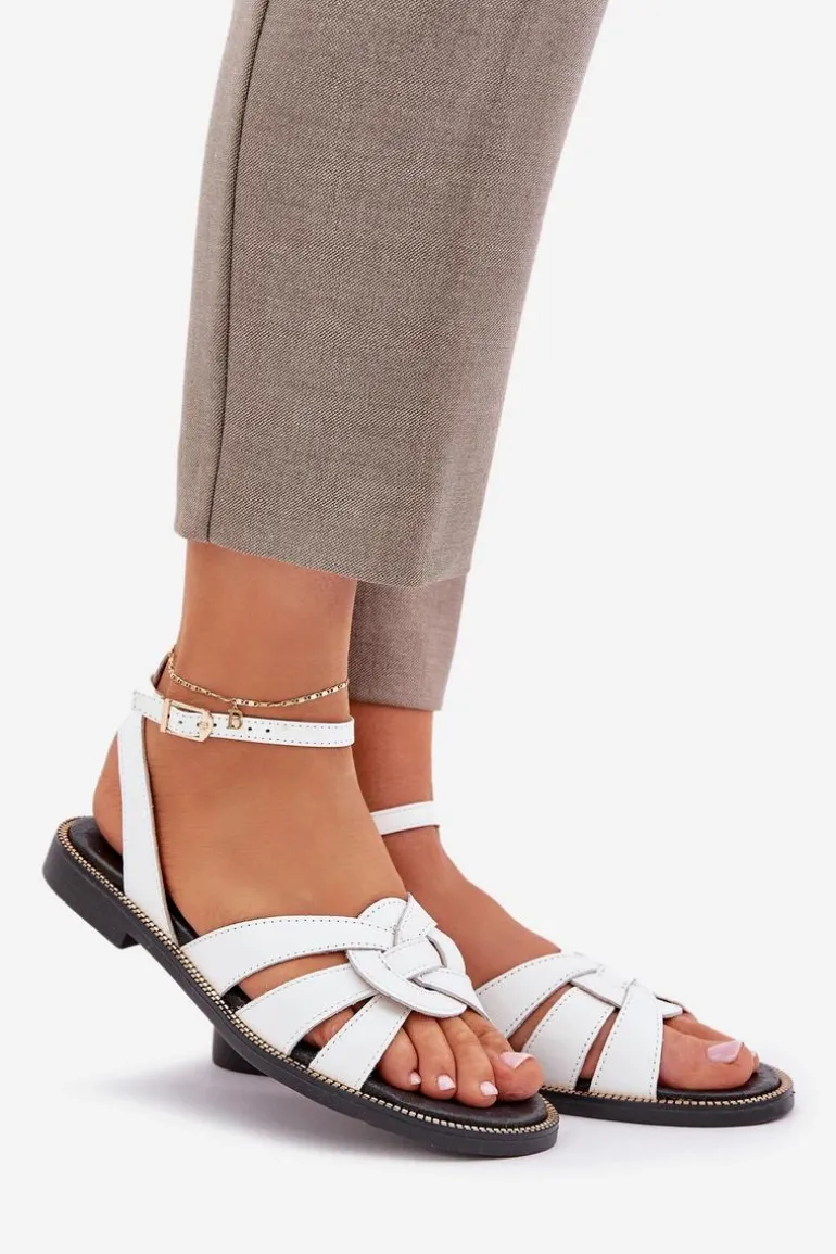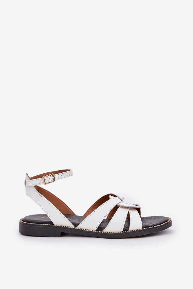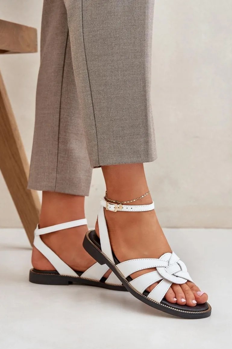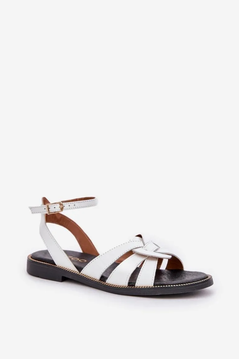 Skórzane Sandały Damskie Na Płaskim Obcasie Zazoo 3688 Białe