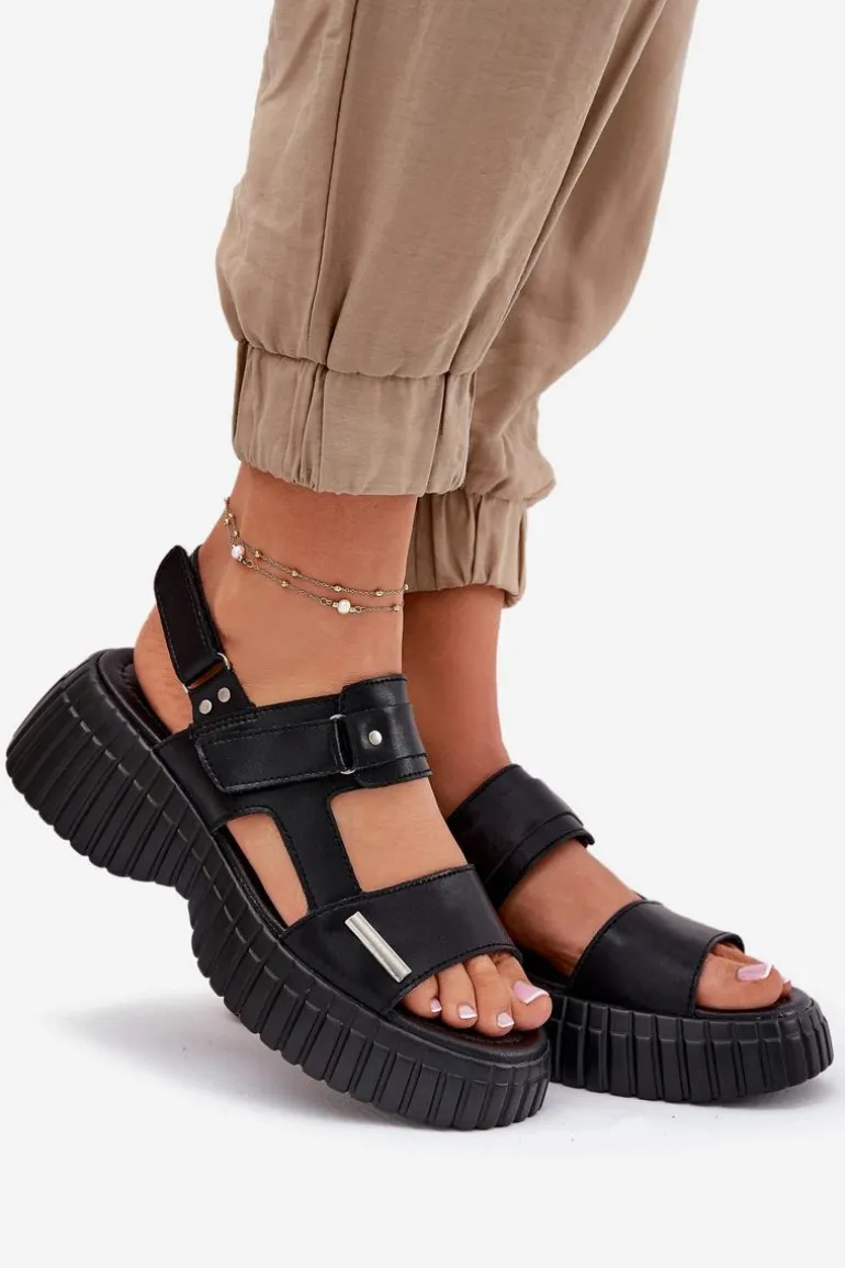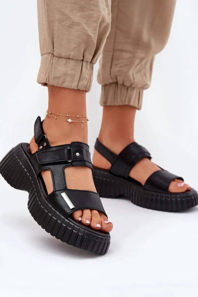 Damskie sandały wykonane z naturalnej skóry to świetna opcja na ciepłe dni, łącząca wygodę z modnym wyglądem. Osadzone na platformie, zapewniają komfort i lekkość przez cały dzień. Model zapinany na podwójny rzep umożliwia łatwe dopasowanie do stopy, zapewniając stabilność i wygodę. Stylowy fason idealnie komponuje się z casualowymi stylizacjami. Te sandały to must-have w letniej garderobie! Przy wyborze rozmiaru prosimy sugerować się tabelą rozmiarów.