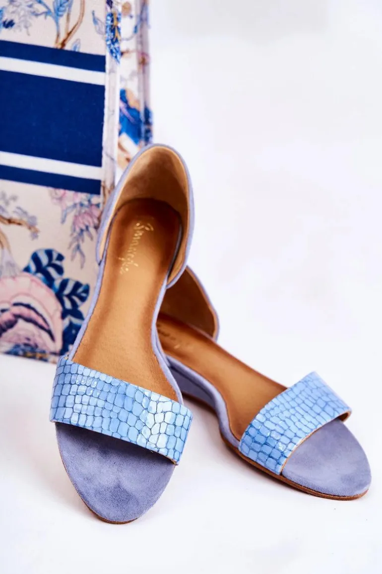 Skórzane Sandały Maciejka 1971-61 Niebieskie