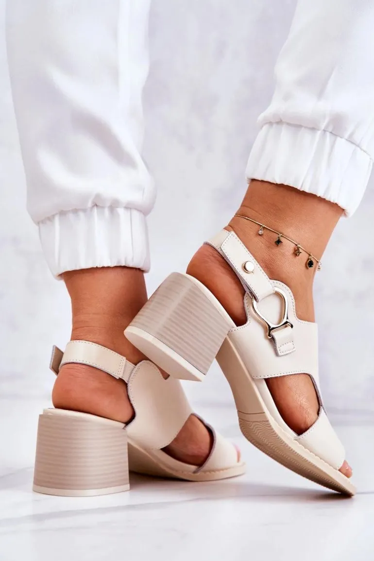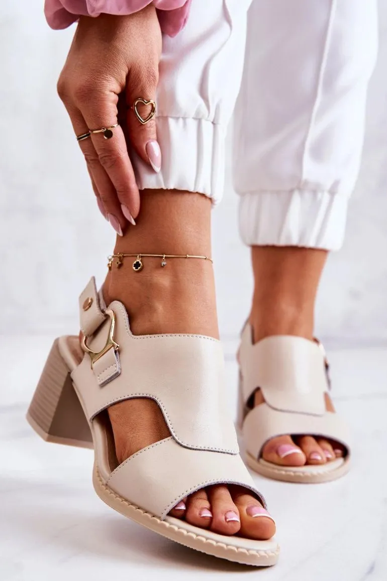 Skórzane Sandały Na Obcasie La.Fi Beżowe Leratto