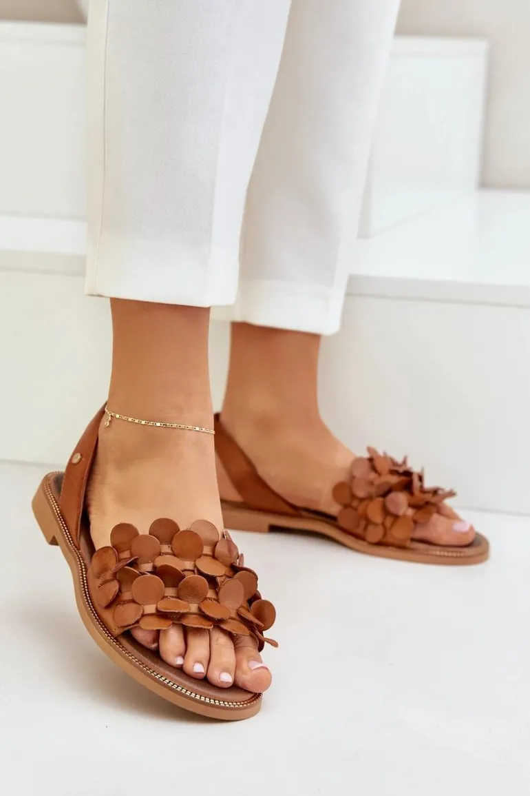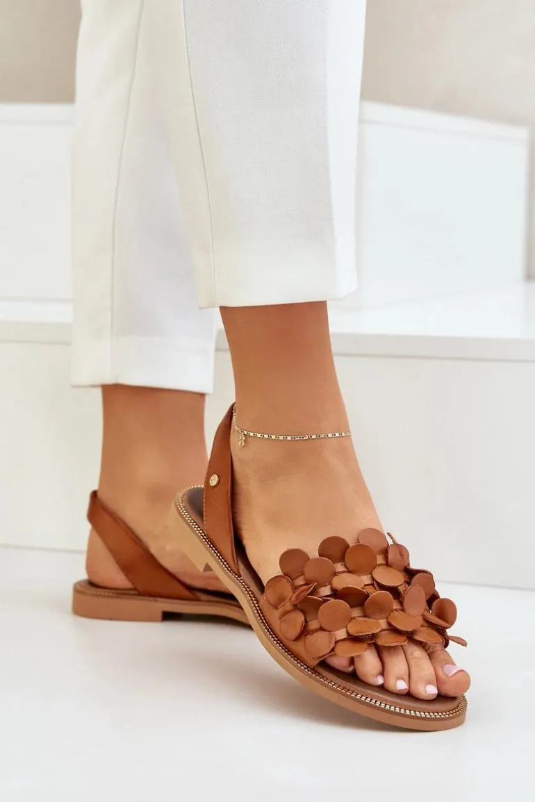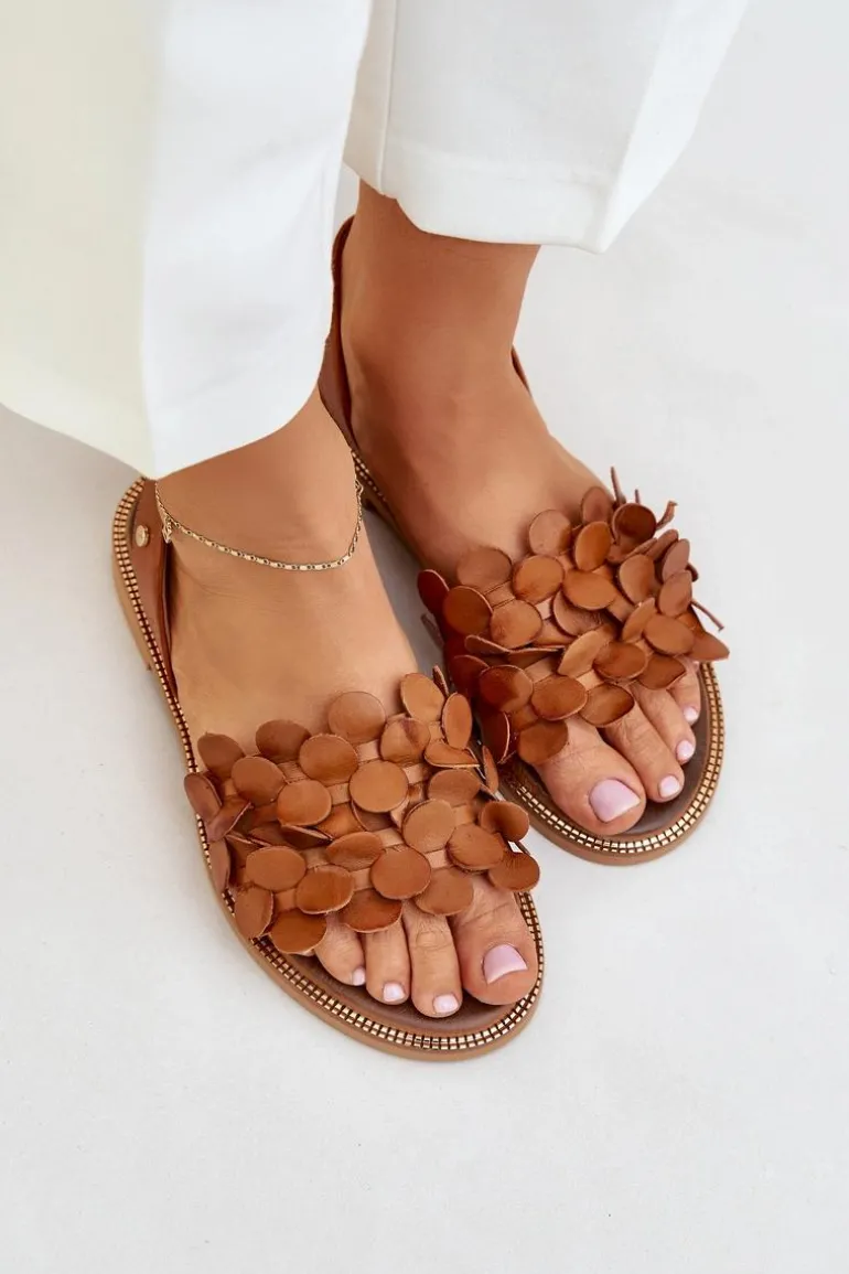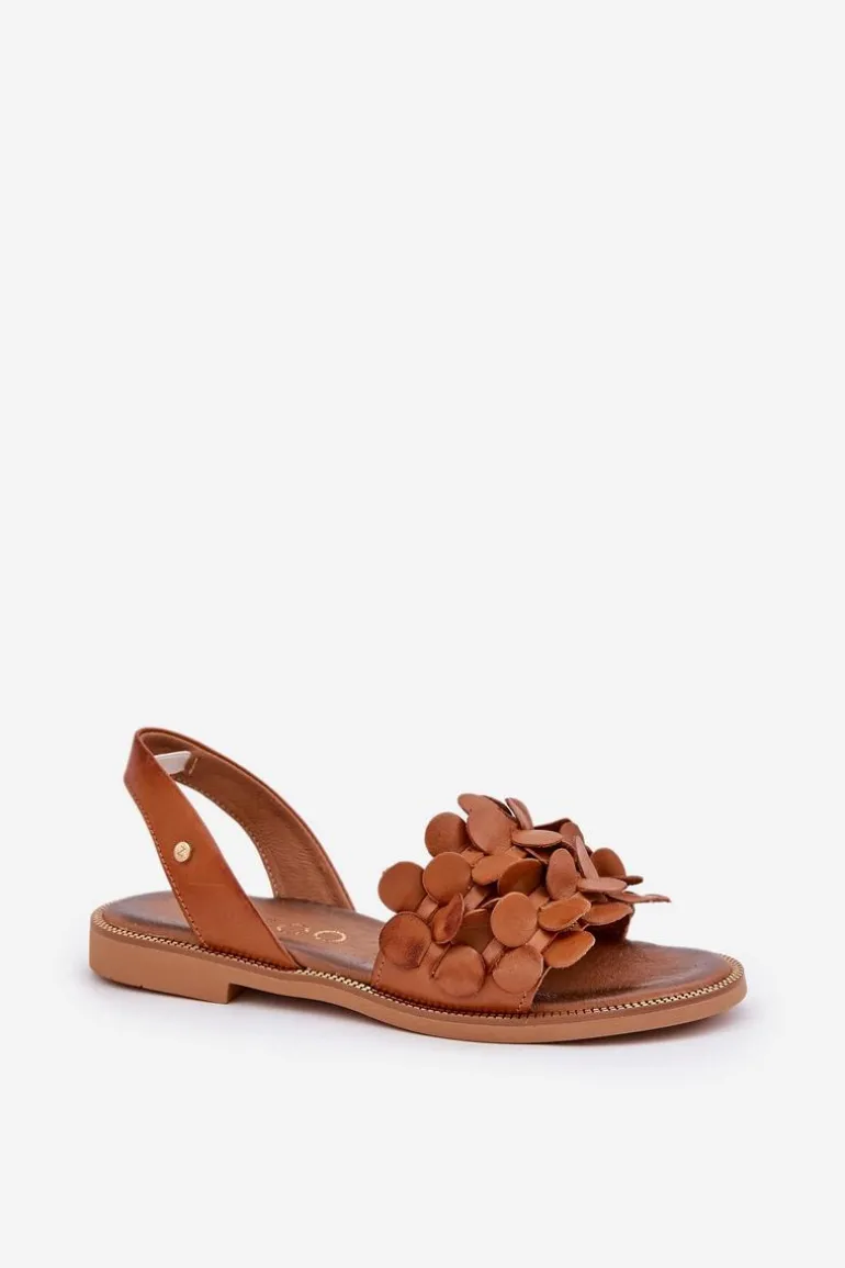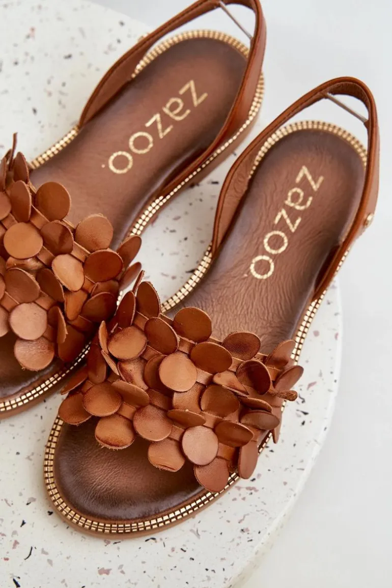 Skórzane Sandały Na Płaskim Obcasie Zazoo 40425 Brązowe