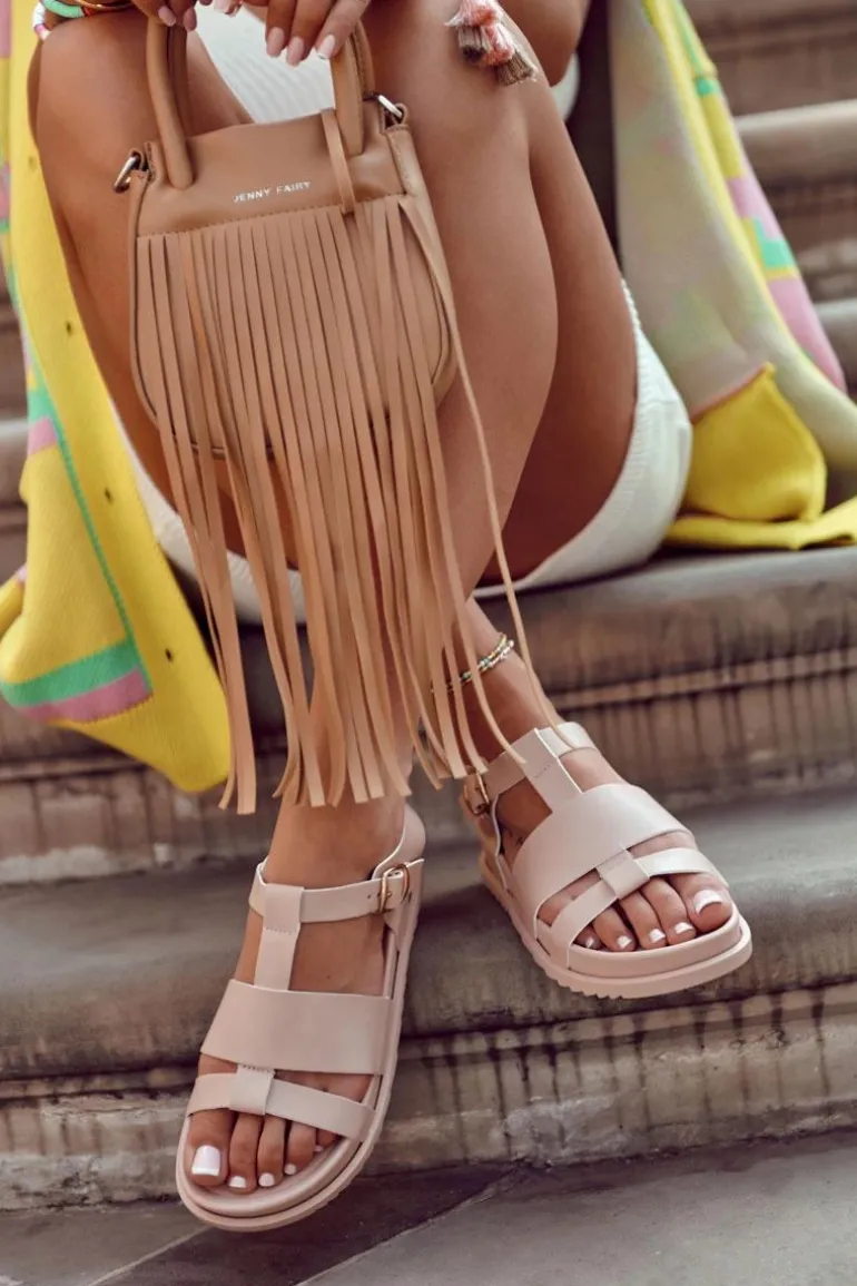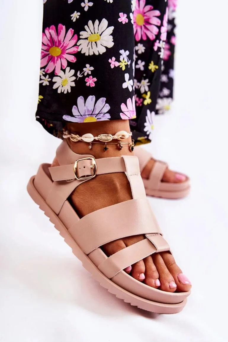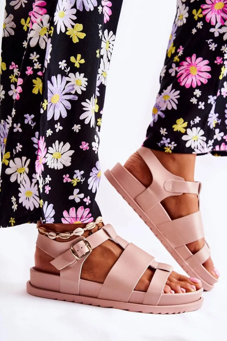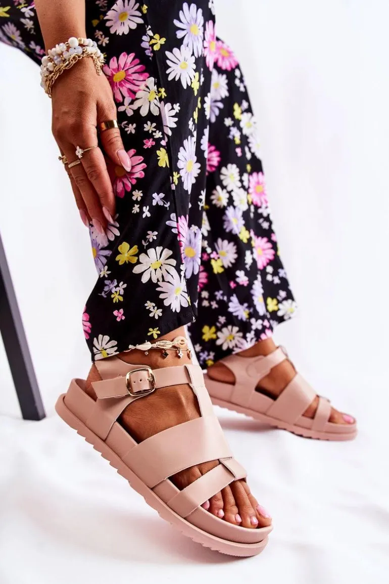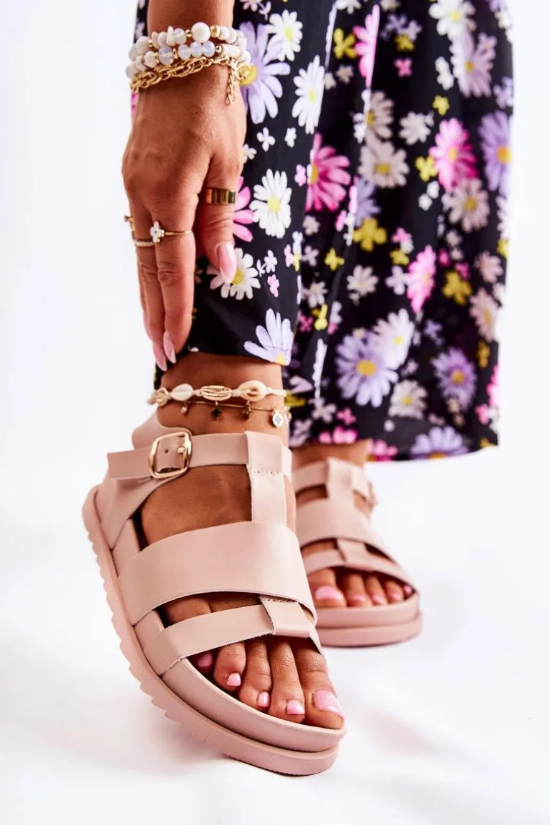 Skórzane Sandały Na Platformie Jasnoróżowe Tessy