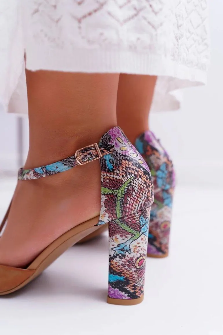 Skórzane Sandały Na Słupku Laura Messi 1916 Wzór Zwierzęcy Brązowe