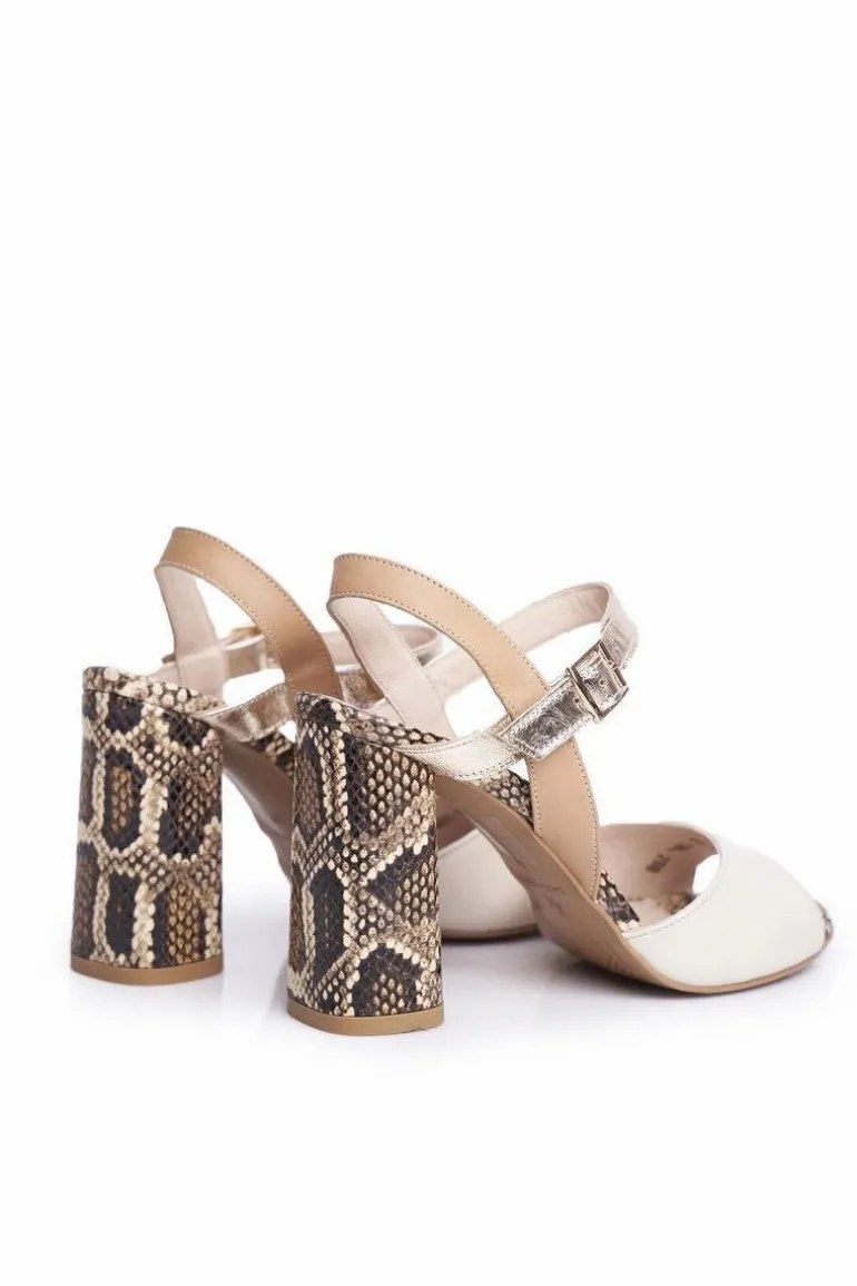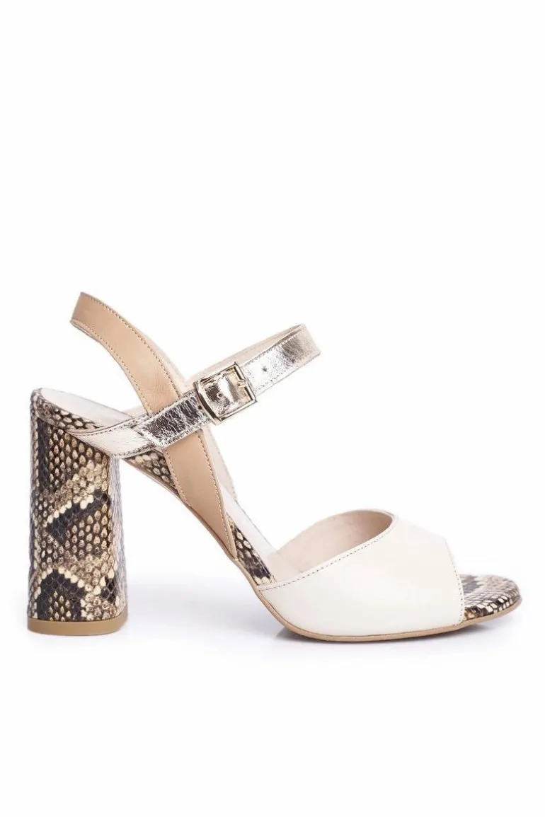 Skórzane Sandały Na Słupku Laura Messi 2136 Złoto Beżowe