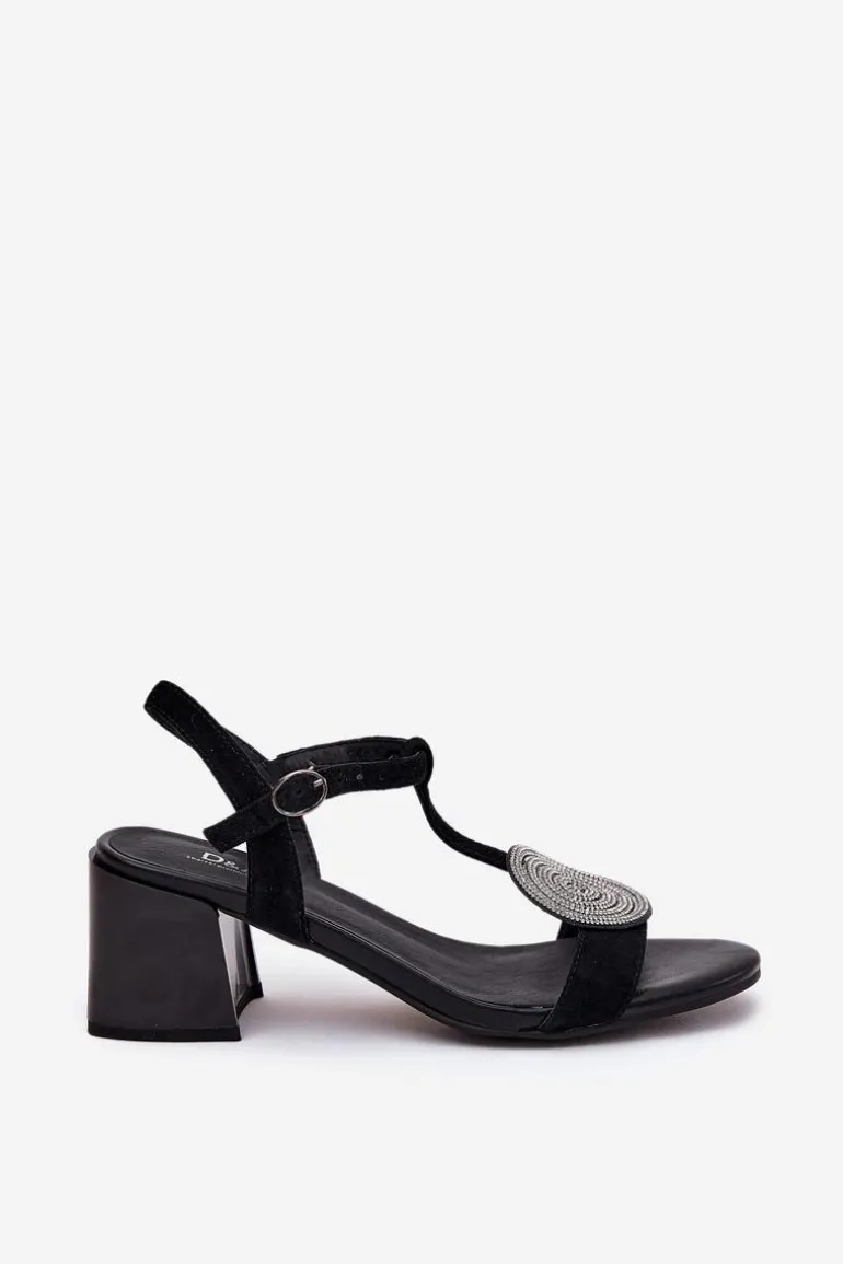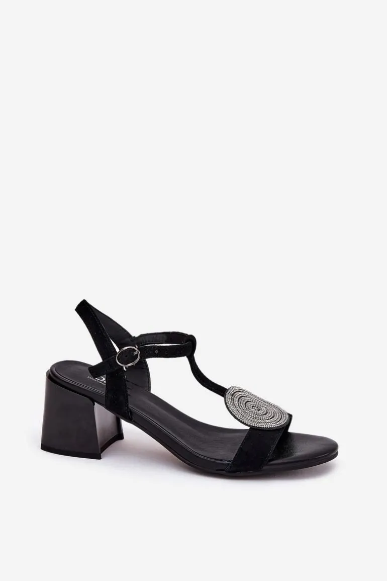 Damskie sandały z naturalnej skóry, osadzone na obcasie słupku, które łączą elegancję z wygodą. Zapinane na sprzączkę z regulowanym paskiem, zapewniają idealne dopasowanie do stopy. Z przodu butów znajduje się ozdobny detal, który przyciąga wzrok i nadaje im wyjątkowego charakteru. Te sandały będą doskonałym wyborem na specjalne okazje, doskonale komponując się z sukienkami lub eleganckimi spodniami. Przy wyborze rozmiaru prosimy sugerować się poniższą tabelą rozmiarów.