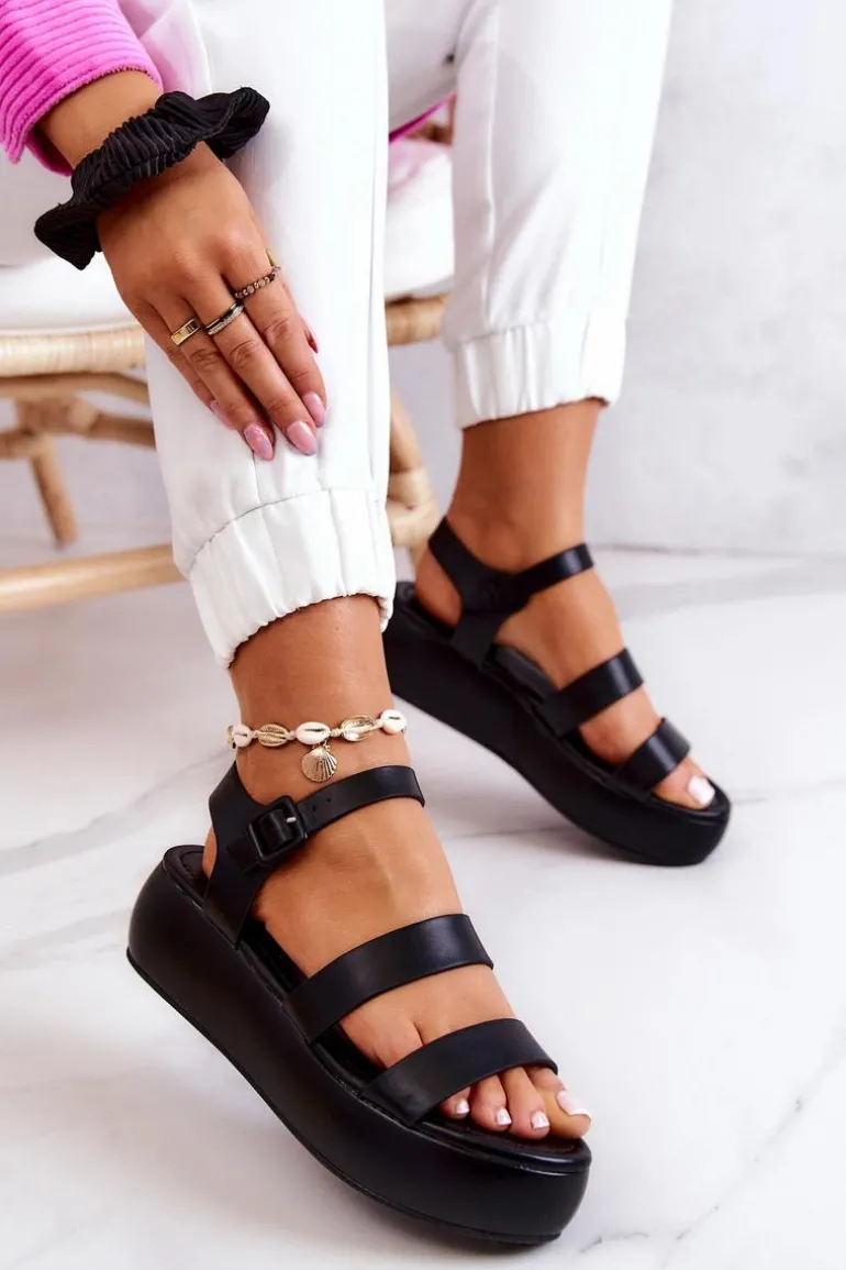Wspaniałe sandałki z regulowanym paskiem zapinanym na sprzączkę. Możesz dopasować je do tęgości nogi. Wykonane z eko skóry. Posiadają platformę oraz koturn. Miękka wkładka zapewni wygodę przez cały dzień. Sandały to idealne buty na lato! Koniecznie powinnaś je mieć! Przy wyborze rozmiaru prosimy kierować się tabelą rozmiarów.