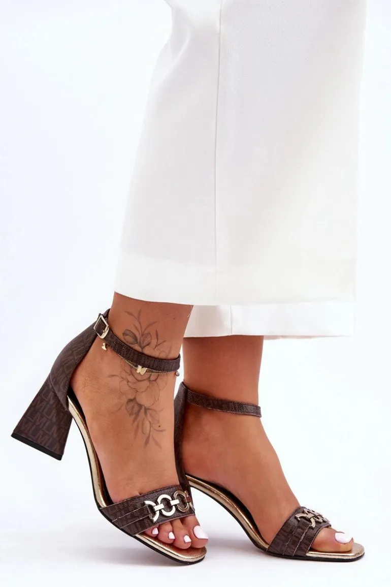 Eleganckie sandały zostały wykonane z naturalnej skóry. Posiadają ozdobę na przednim pasku wykonaną z tworzywa sztucznego. Miękka wkładka została wykonana z naturalnej skóry i zapewni komfort podczas użytkowania. Model ten jest zapinany wokół kostki na sprzączkę i jest regulowany. Sandałki osadzono na trójkątnym obcasie, który jest stabilny i wygodny. Buty świetnie sprawdzą się na spotkania biznesowe czy na różnego rodzaju uroczystości. Przy wyborze rozmiaru prosimy sugerować się tabelą rozmiarów.