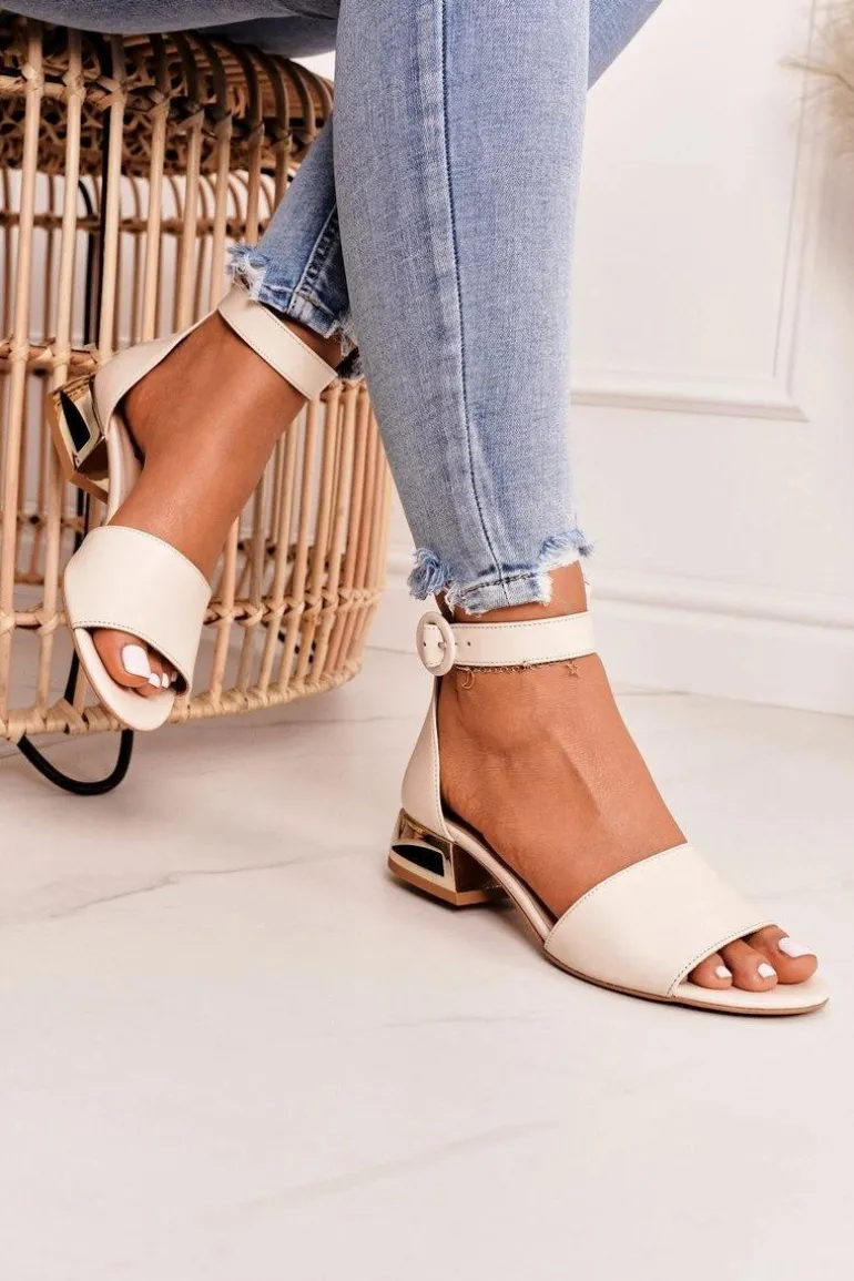 Skórzane Sandały Na Złotym Obcasie Laura Messi 2143 Beżowe