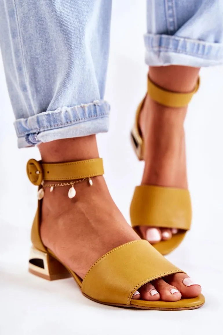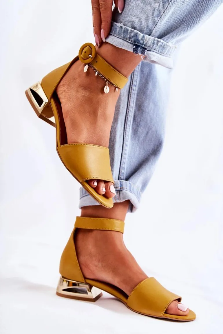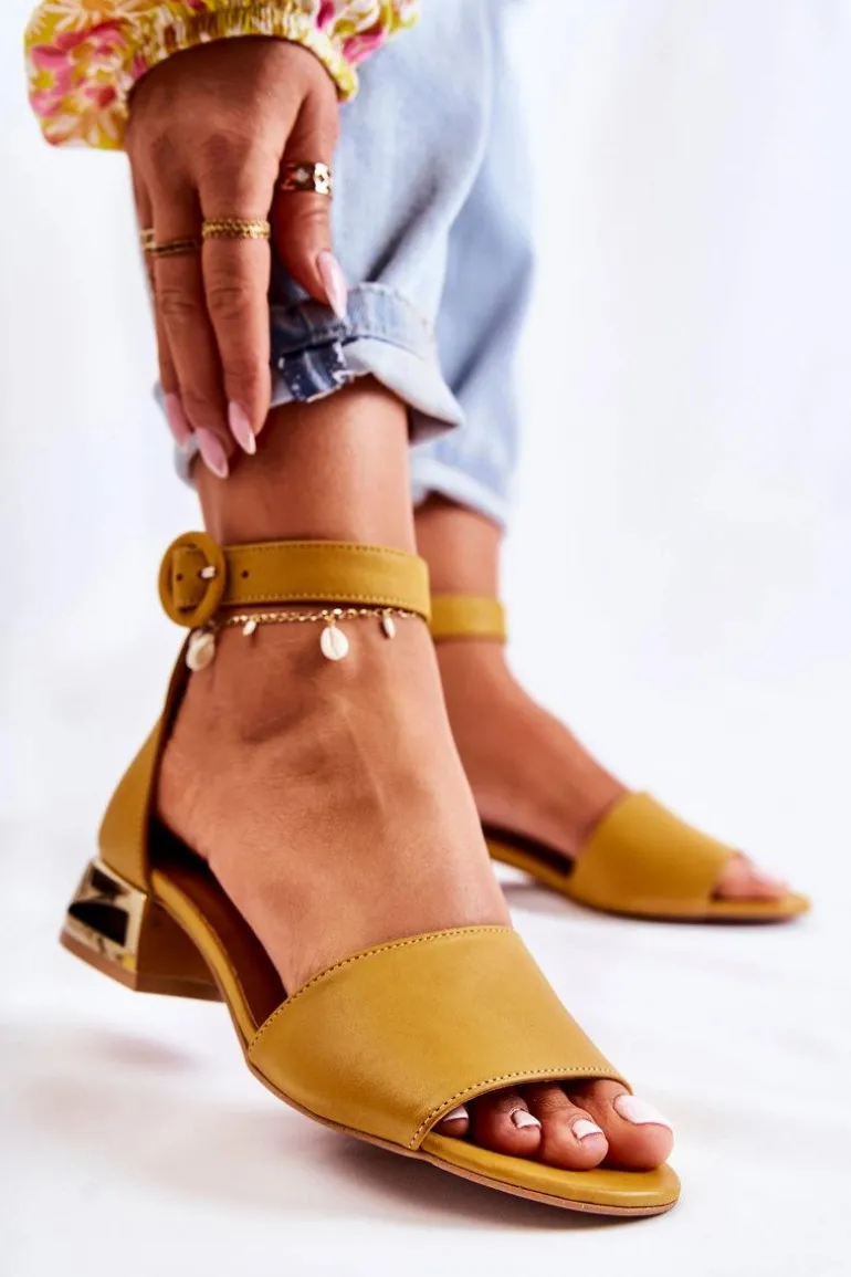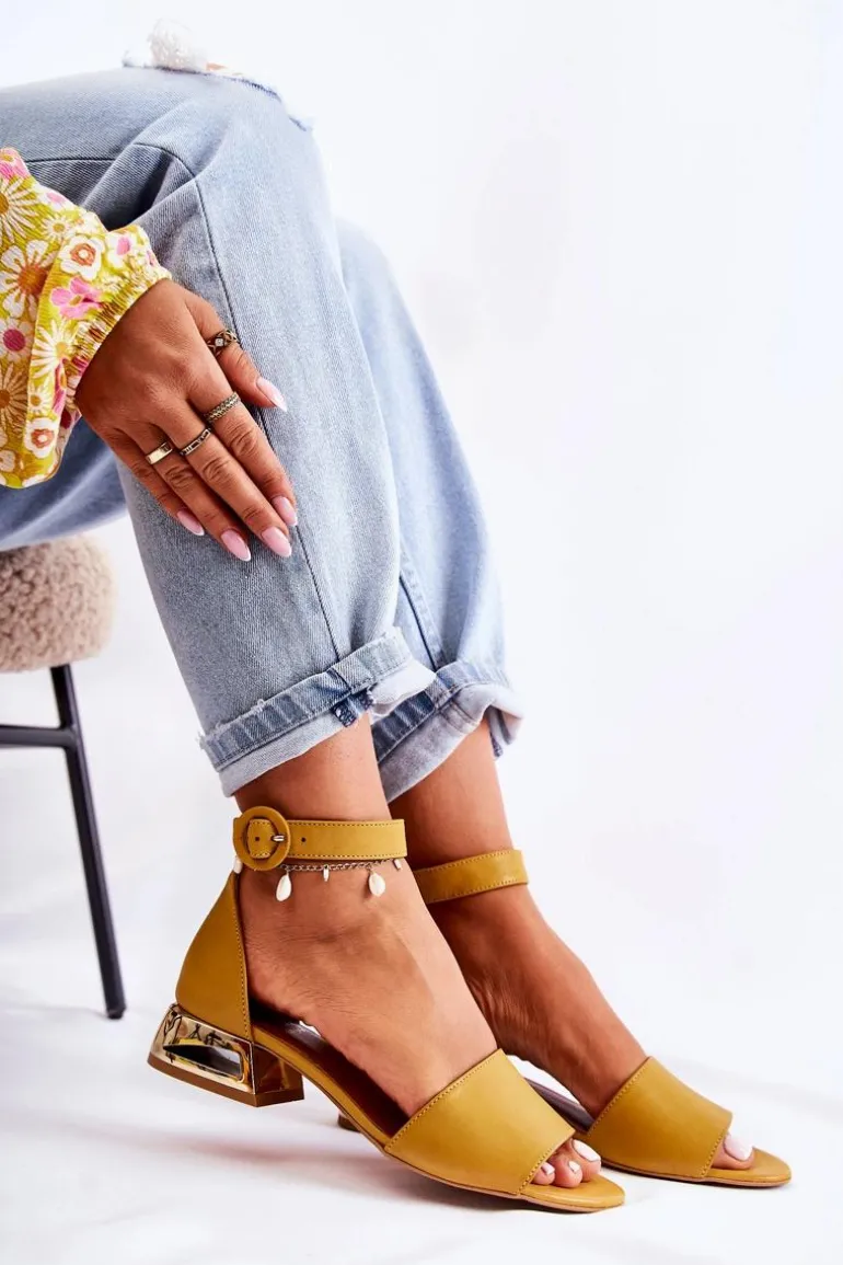 Skórzane Sandały Na Złotym Obcasie Laura Messi 2143 Ciemnożółte