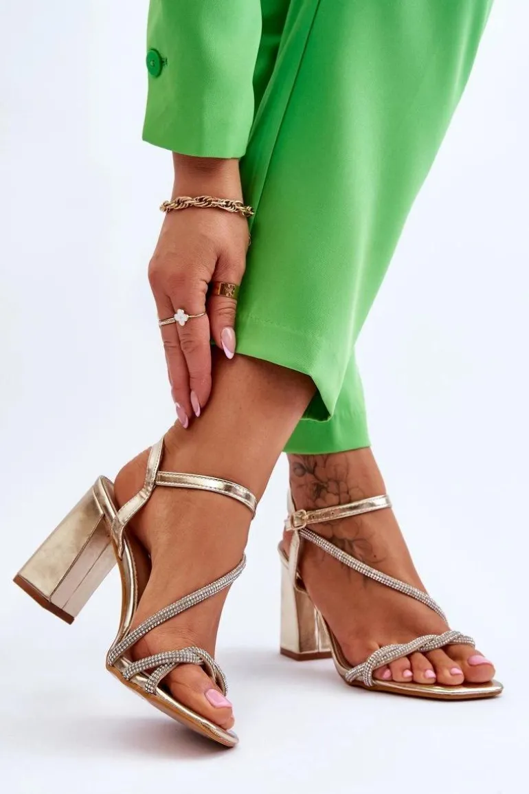 Damskie sandały zostały wykonane z eko skóry. Posiadają z przodu przeplatające się paski z dżetami imitującymi cyrkonie oraz paseczek znajdujący się na środku sandałek. Wygodna wkładka z eko skóry pozwoli na komfortowe użytkowanie obuwia. Buty posiadają regulowany pasek zapinany na sprzączkę wokół kostki. Ten model powinien być Twój! Przy wyborze rozmiaru prosimy sugerować się tabelą rozmiarów.