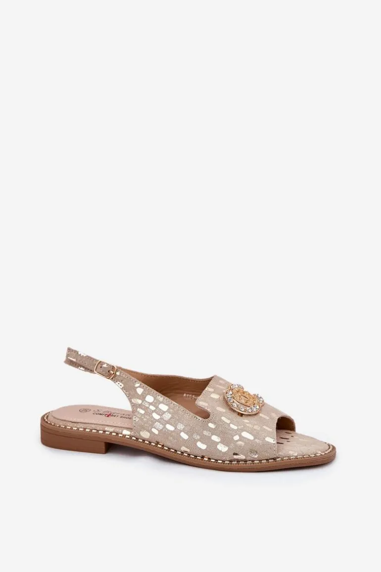 Damskie sandały wykonane z naturalnej skóry zamszowej stanowią elegancką opcję na letnie dni. Osadzone na płaskim obcasie, oferują komfort i wygodę przez cały dzień. Zapięcie na sprzączkę umożliwia idealne dopasowanie do stopy. Przód ozdobiony jest subtelnym detalem, co nadaje im unikalny charakter. Skórzana wkładka zapewnia dodatkowy komfort, co czyni te sandały idealnym wyborem na eleganckie letnie stylizacje. Przy wyborze rozmiaru prosimy kierować się tabelą rozmiarów.