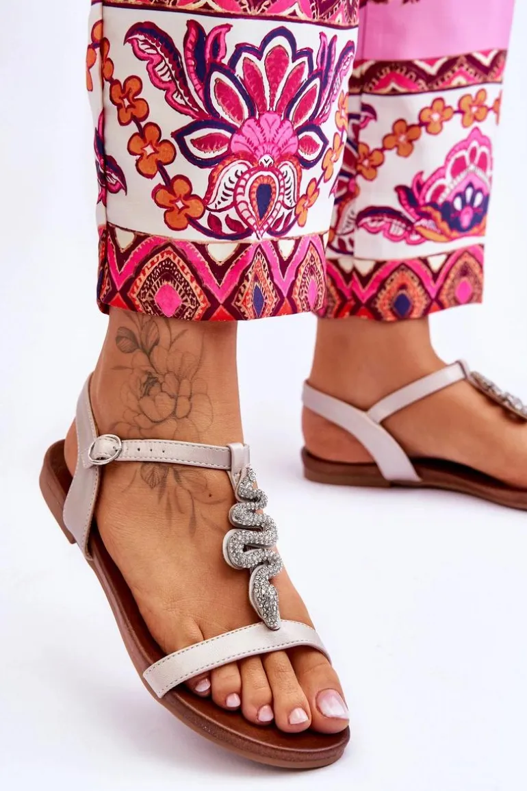 Skórzane Sandały Z Ozdobnym Wężem S.Barski KV-5541-42 Beżowe