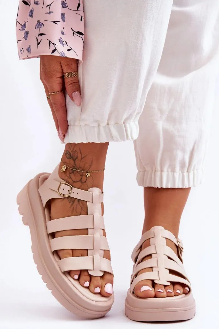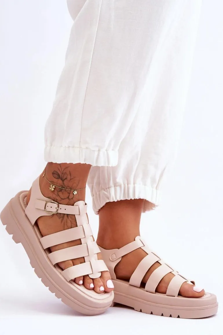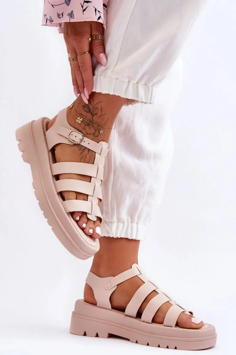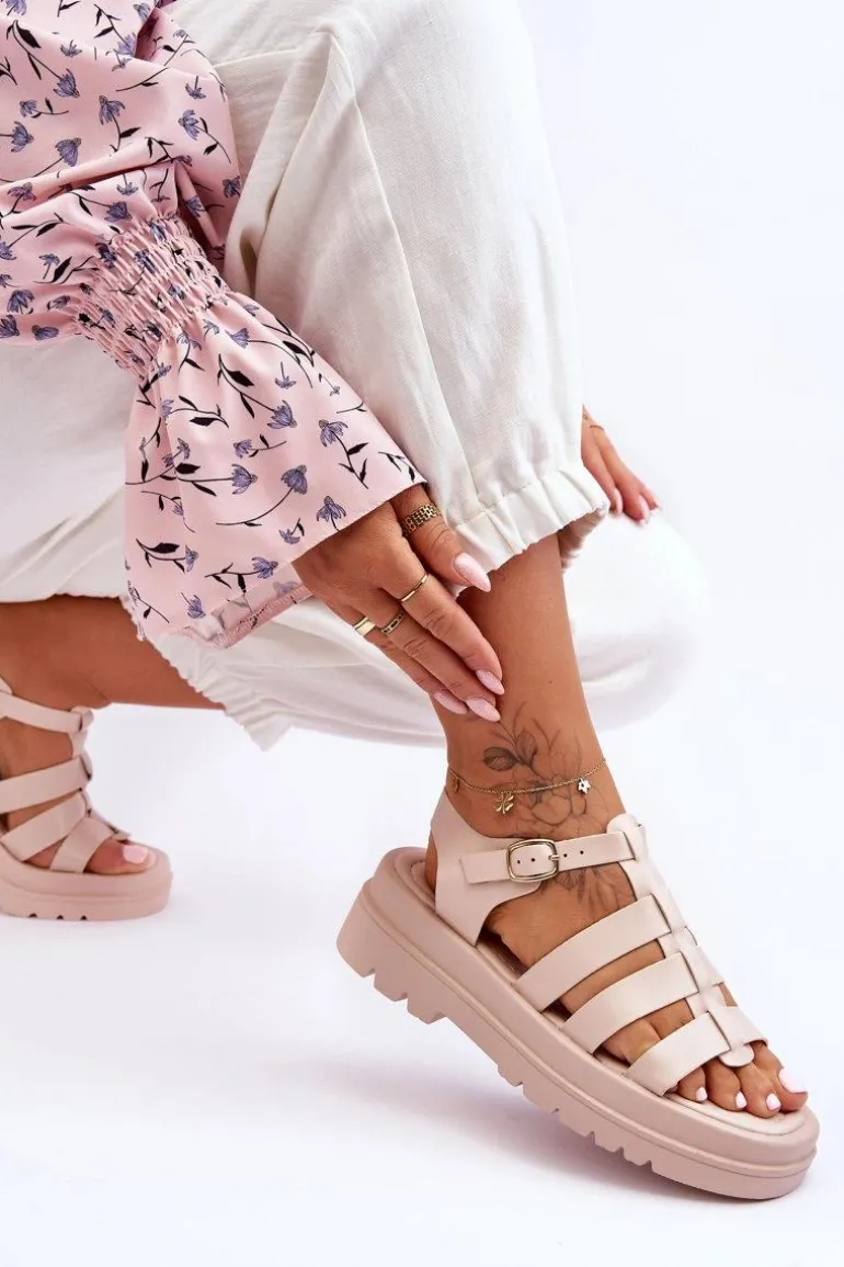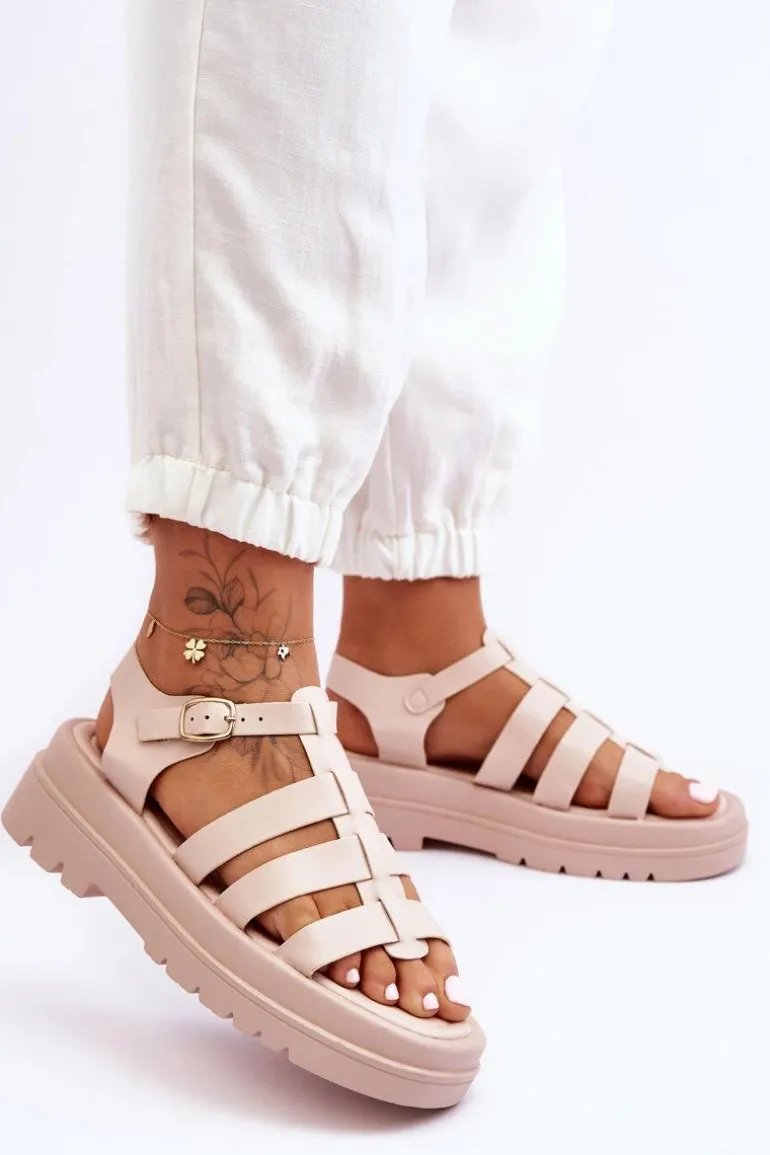 Skórzane Sandały Z Paseczkami Beżowe Colet