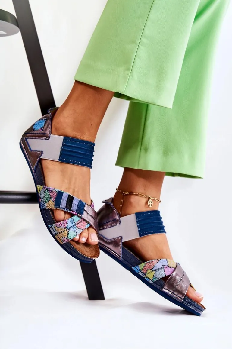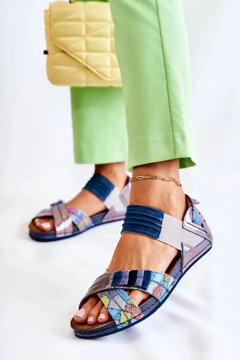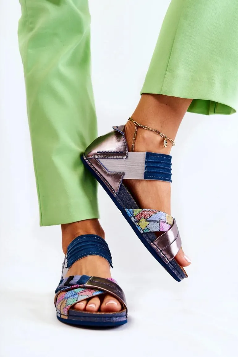 Skórzane Sandały Ze Ściągaczem Maciejka 03375 Niebieskie