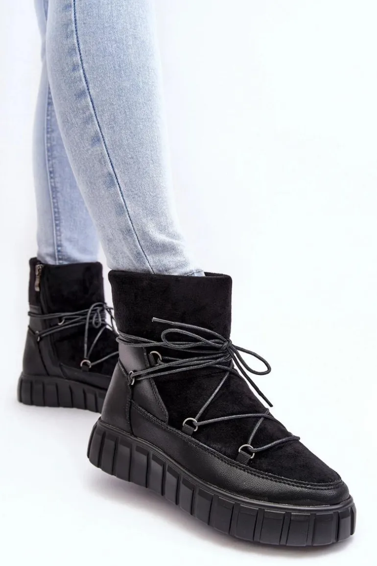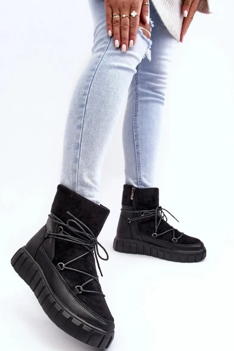 Świetne, damskie śniegowce zostały wykonane ze skóry naturalnej. Zapinane na suwak z boku oraz dodatkowo posiadają sznurówki. Osadzone na platformie. Środek ocieplony kocem obuwniczym. Ten model z pewnością przyda się każdej miłośniczce ciepłego i wygodnego obuwia! Przy wyborze rozmiaru prosimy sugerować się tabelą rozmiarów.