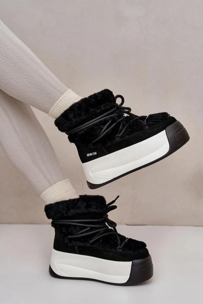 Śniegowce damskie od marki Big Star. Ocieplone futerkiem zapewni ciepło dla stóp w zimne dni. Osadzone na antypoślizgowej podeszwie, która zapewnia doskonałą przyczepność na oblodzonych powierzchniach. Śniegowce idealnie komponują się z różnorodnymi stylizacjami, od swobodnych po sportowe. Przy wyborze rozmiaru prosimy sugerować się tabelą rozmiarów.