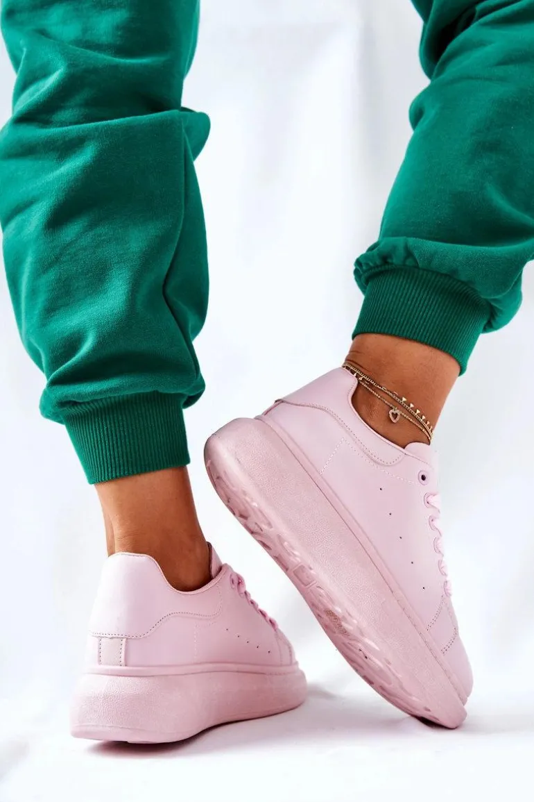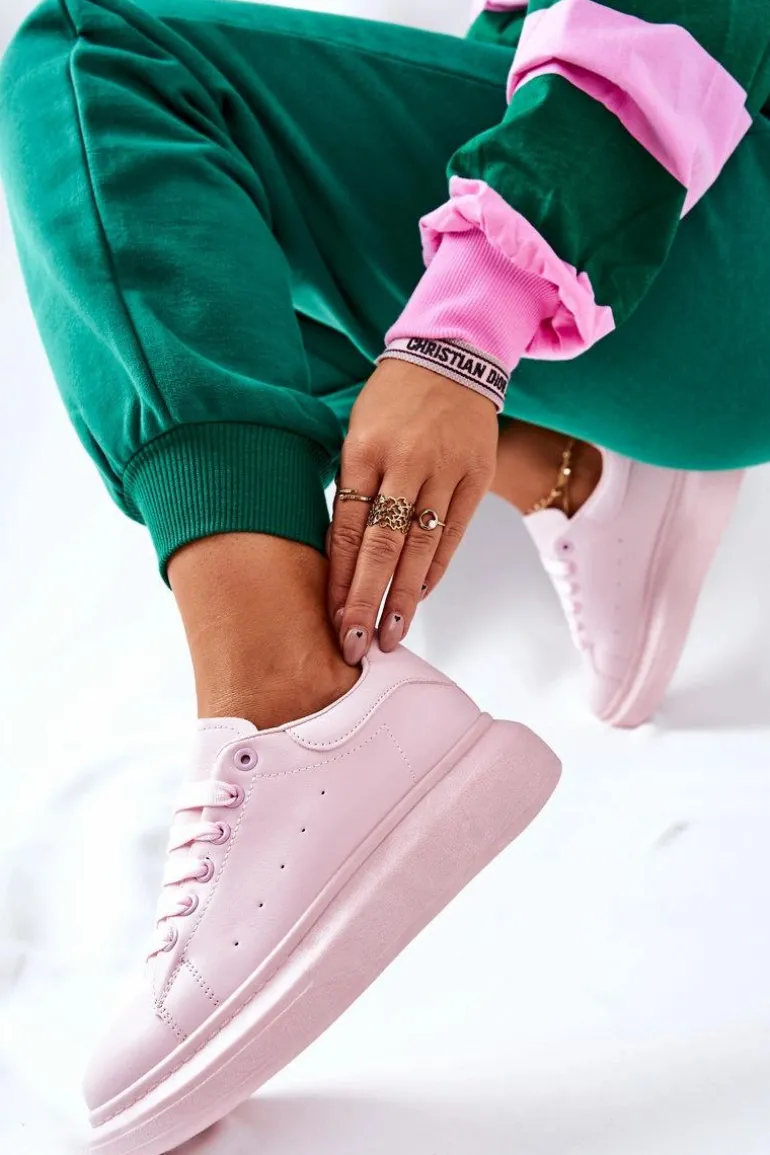 Skórzane Sportowe Buty Na Platformie Różowe Lemmy