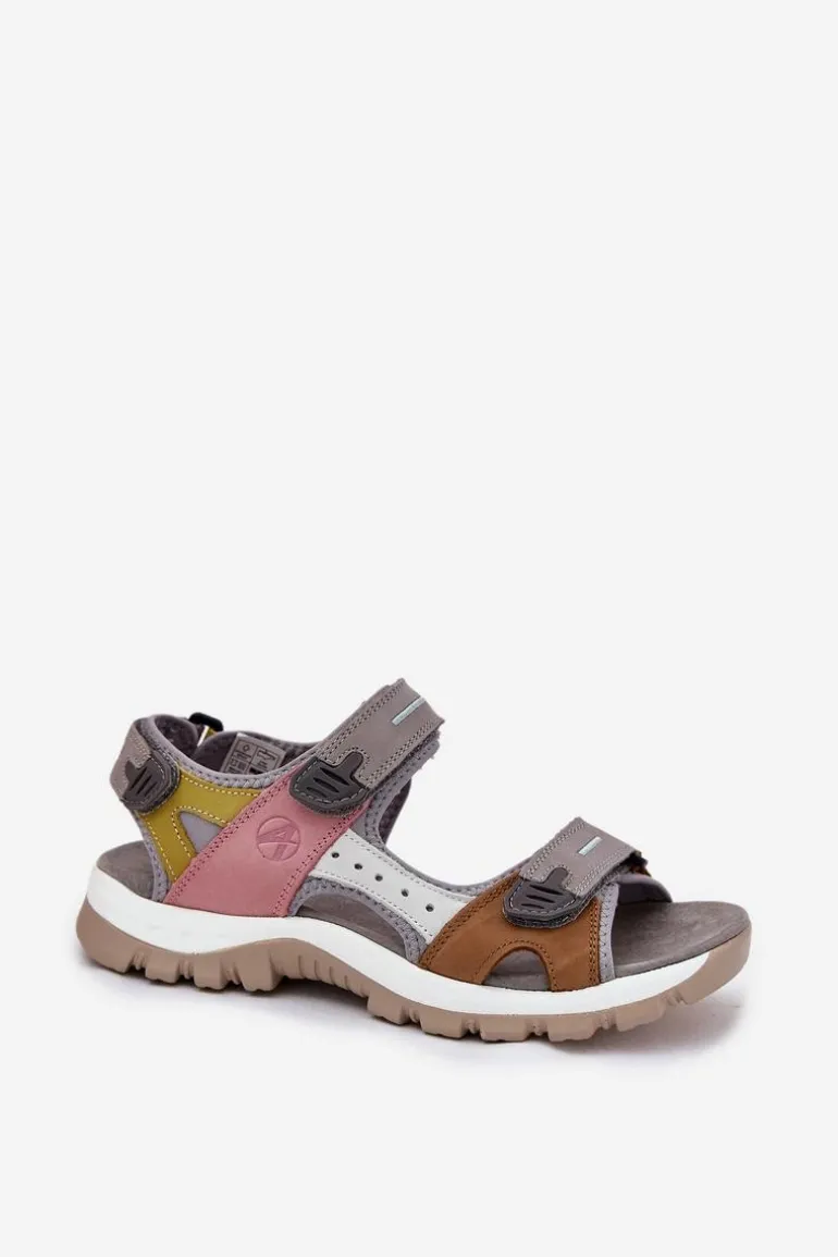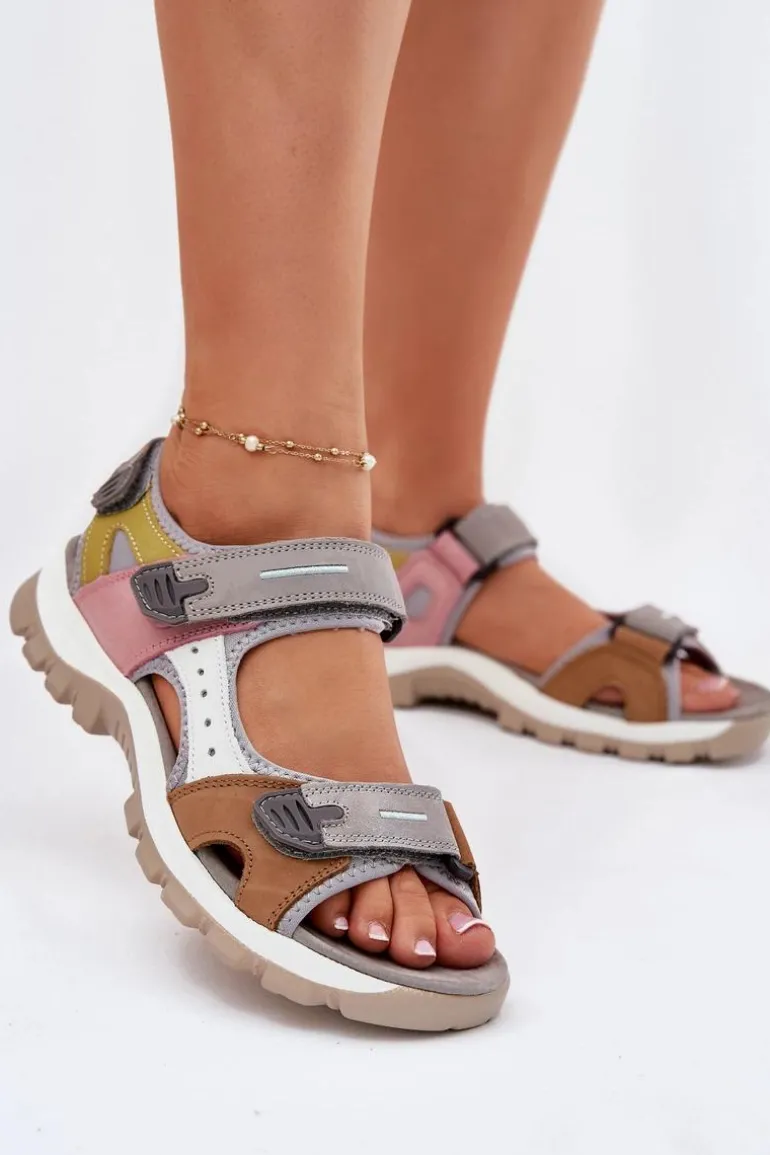 Damskie sandały w sportowym stylu, wykonane z naturalnej skóry, stanowią znakomity wybór na ciepłe dni. Dzięki zapięciu na dwa rzepy z przodu oraz jeden z tyłu można je łatwo dopasować do stopy, co zapewnia wygodę przez cały dzień. Model ten został wyposażony w miękką wkładkę, co gwarantuje komfort. Idealne do codziennego noszenia oraz aktywności na świeżym powietrzu. Przy wyborze rozmiaru prosimy sugerować się tabelą rozmiarów.