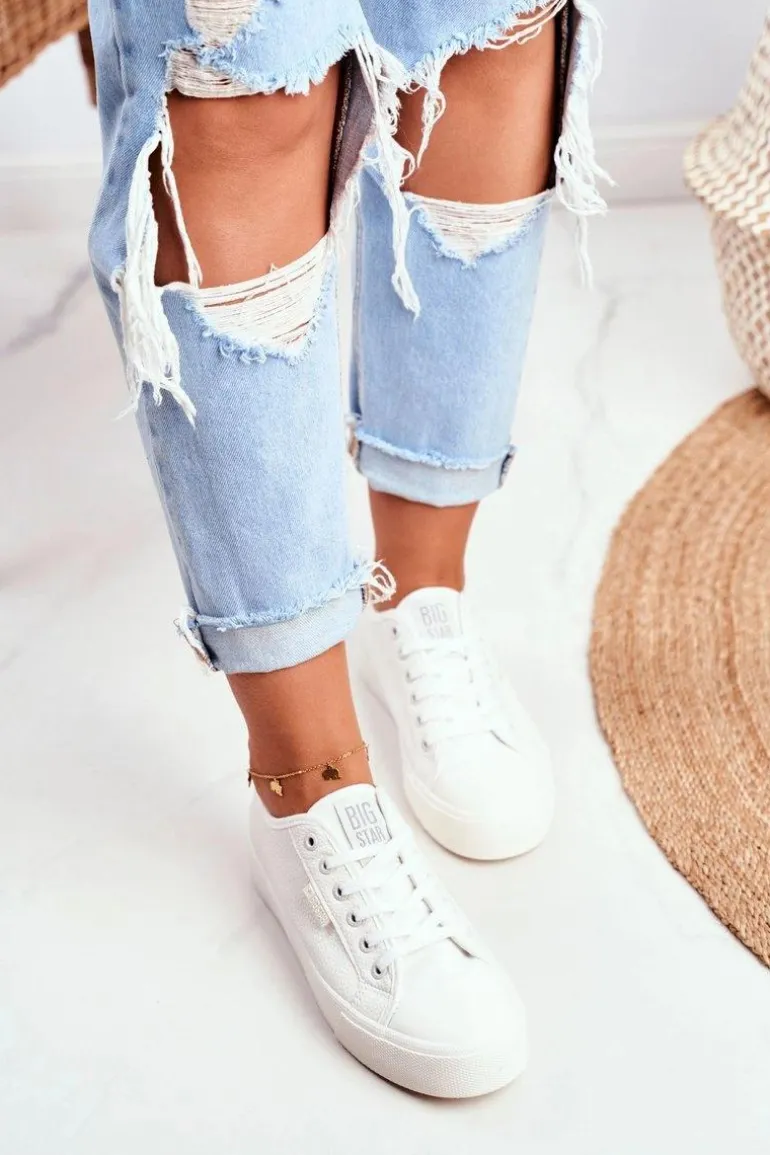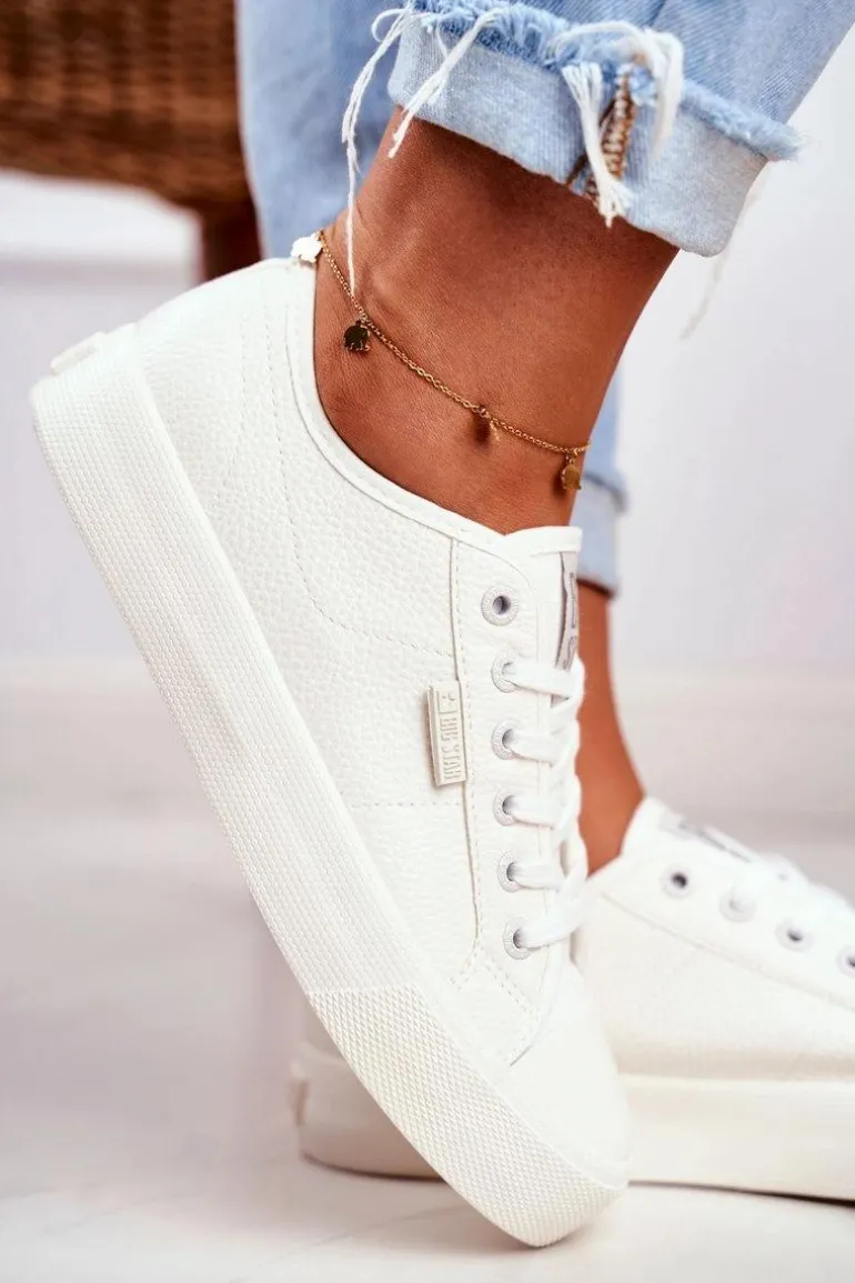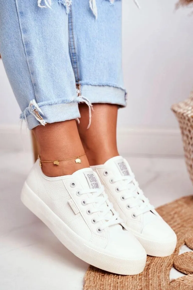 Skórzane Trampki Damskie Big Star Białe GG274098