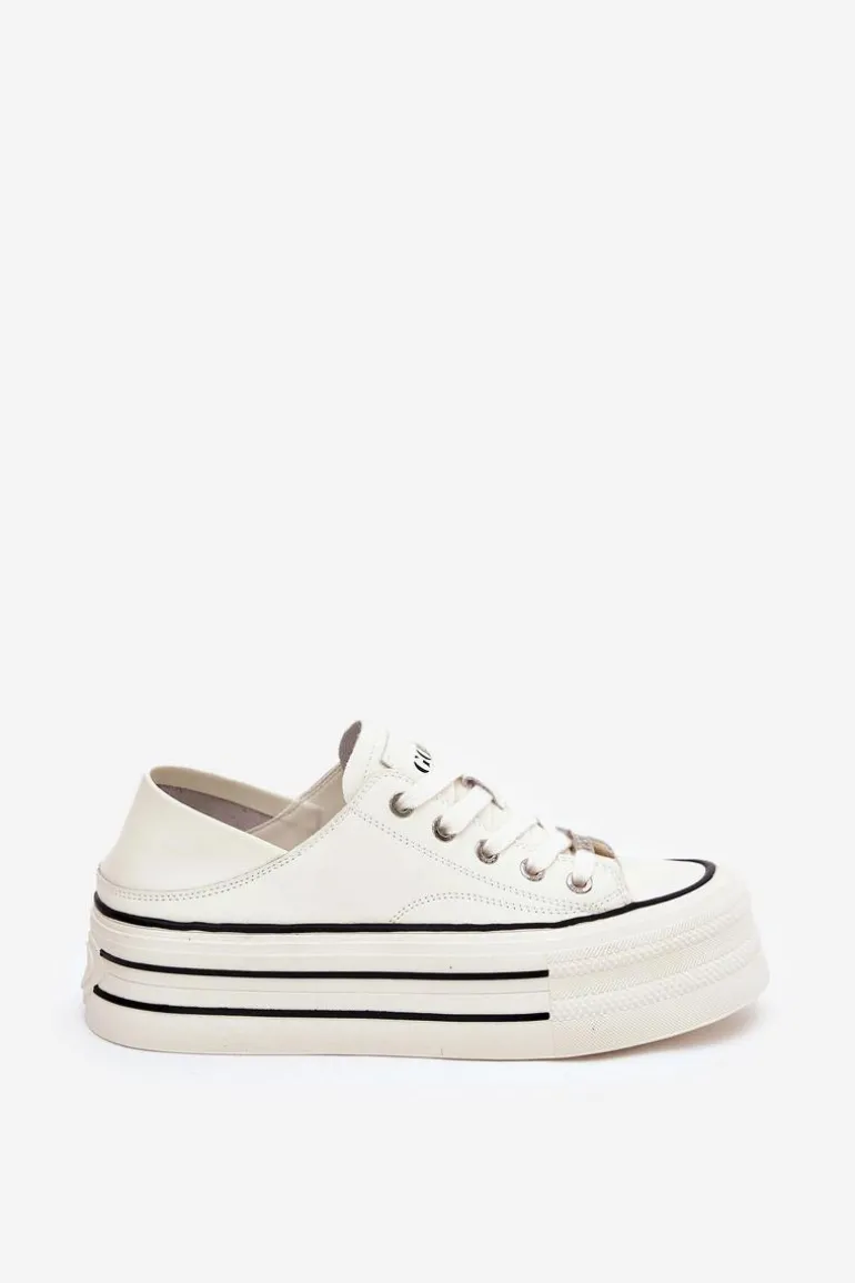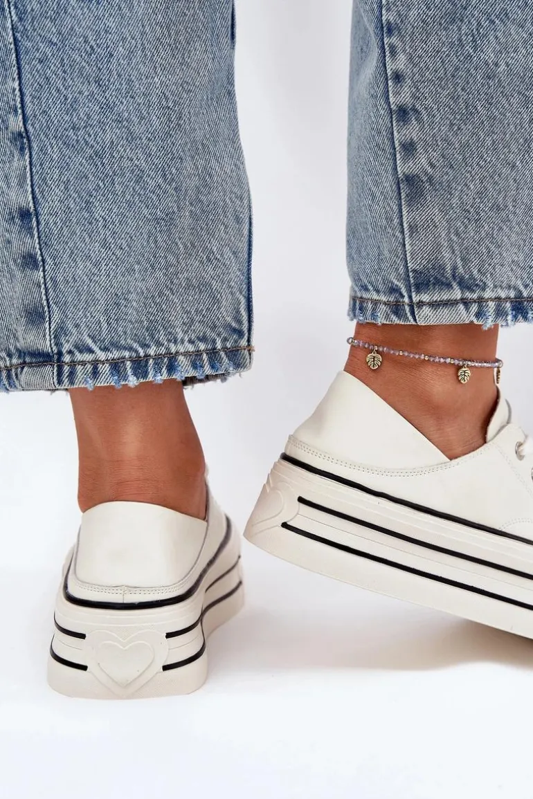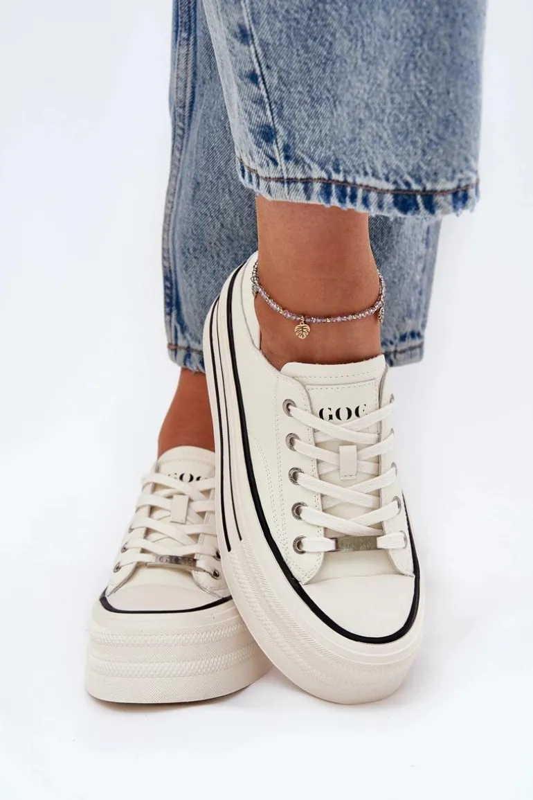 Trampki damskie od marki GOE. Wykonane z wysokiej jakości skóry naturalnej. Osadzone na masywnej platformie, zapewniają komfort i stabilność, jednocześnie dodając lekkości sylwetce. Miękka wkładka dba o komfort przez cały dzień. Te trampki to doskonały wybór do codziennych stylizacji! Przy wyborze rozmiaru prosimy sugerować się tabelą rozmiarów.