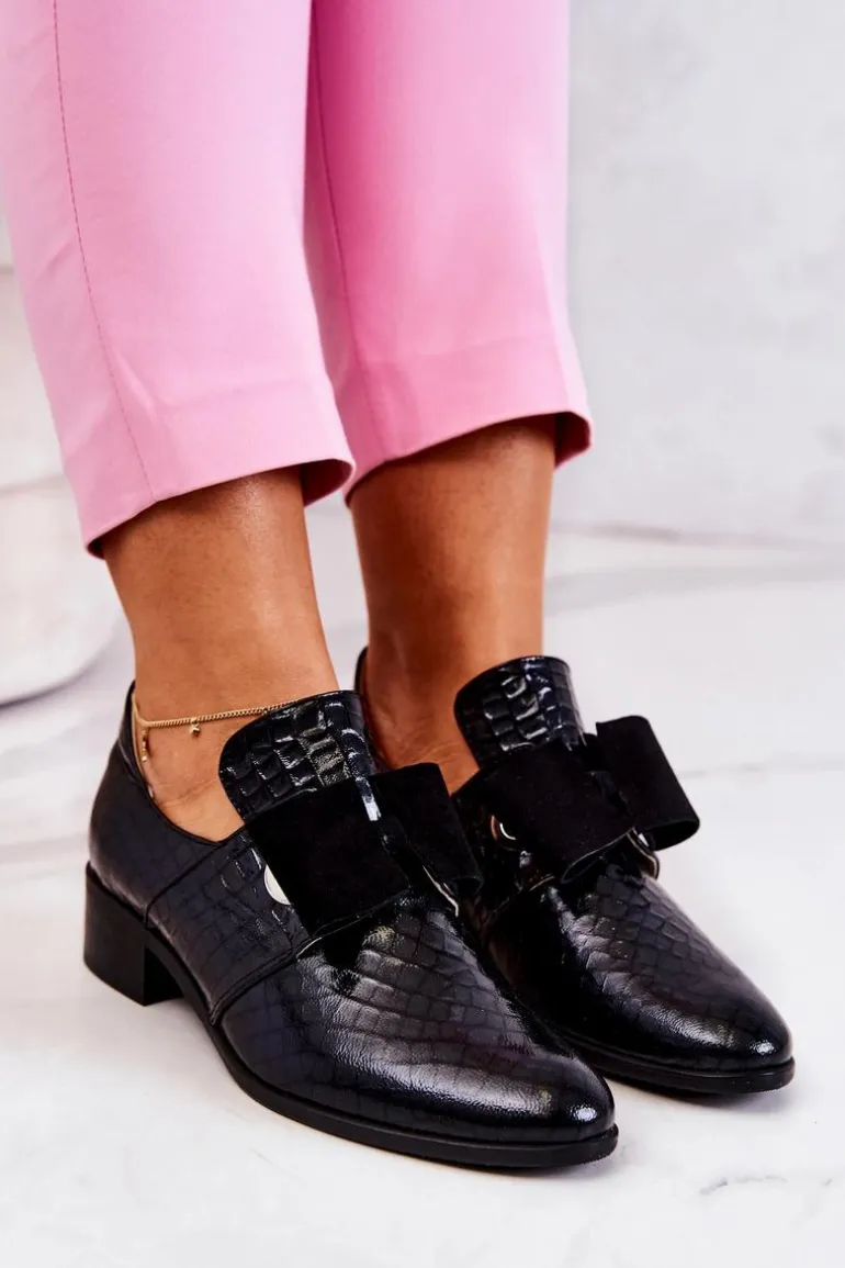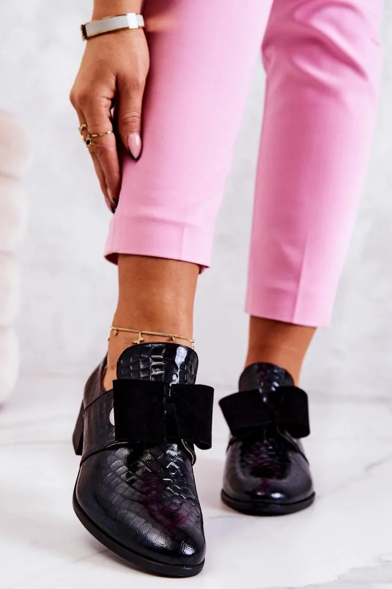 Półbuty są wykonane z naturalnej skóry. Modny krokodyli wzór na całości obuwia. Miękka wkładka z naturalnej skóry daje poczucie komfortu na każdym kroku. Buty wykonane z dbałością o szczegóły. Piękna kokardka nadaje butom elegancji! Nie możesz przejść obojętnie obok tego modelu! Nie zwlekaj i kup już dziś! Przy wyborze rozmiaru prosimy sugerować się tabelą rozmiarów, która dostępna jest po najechaniu bądź kliknięciu w dany rozmiar.