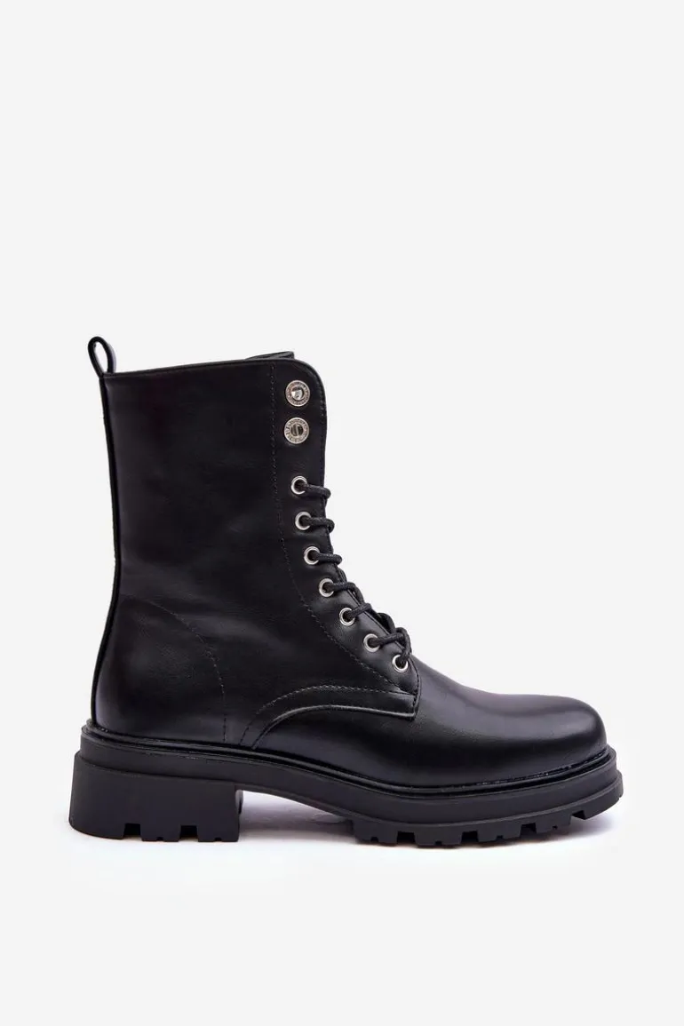 Klasyczne damskie botki zostały osadzone na płaskim obcasie i platformie. Wykonane z eko skóry. Zapinane na suwak po wewnętrznej stronie cholewki oraz dodatkowo posiadają sznurowanie. Zapiętek w tym obuwiu jest usztywniany. Z przodu ozdoba z tworzywa sztucznego. Model ten jest idealny na jesienne dni! Koniecznie powinnaś je mieć w swojej szafie! Przy wyborze rozmiaru prosimy sugerować się tabelą rozmiarów.