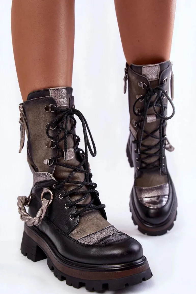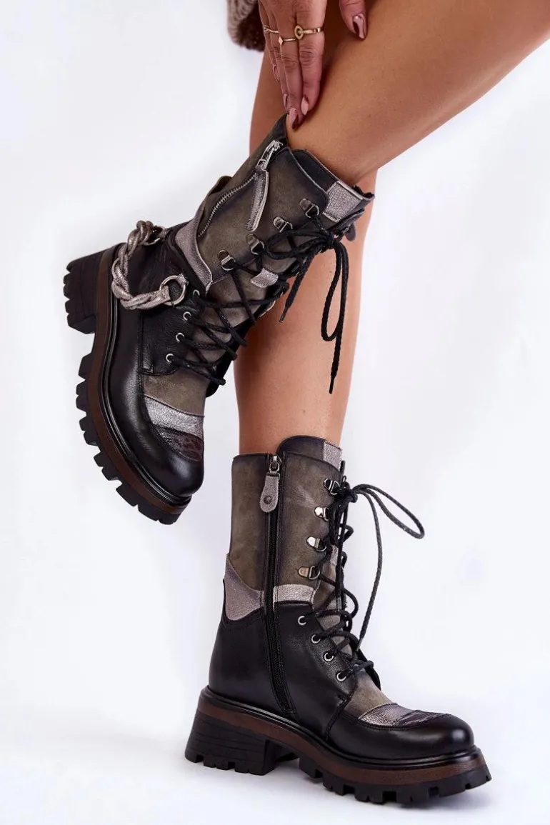 Skórzane Wysokie Botki Workery Maciejka 05586-01 Czarno-Szare