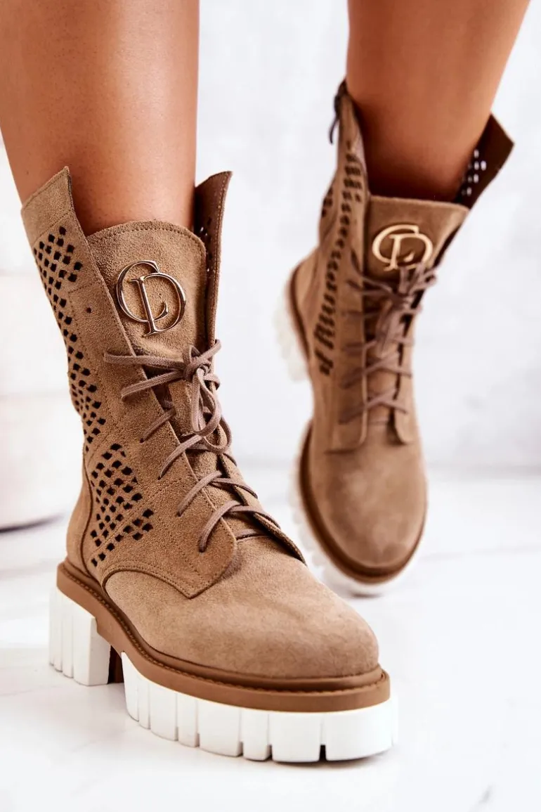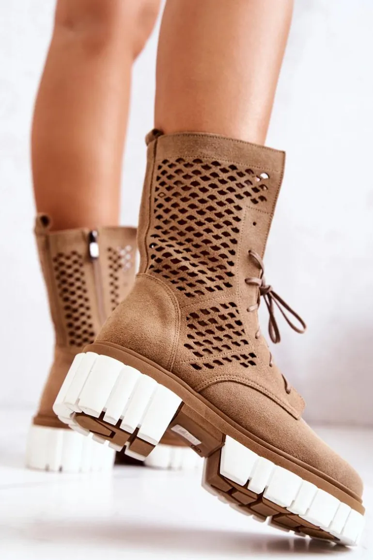 Skórzane Wysokie Botki Workery Nicole Jasnobrązowe 2706