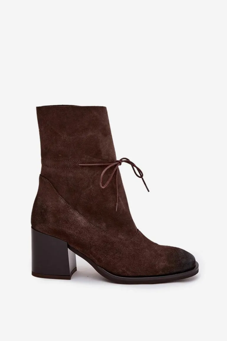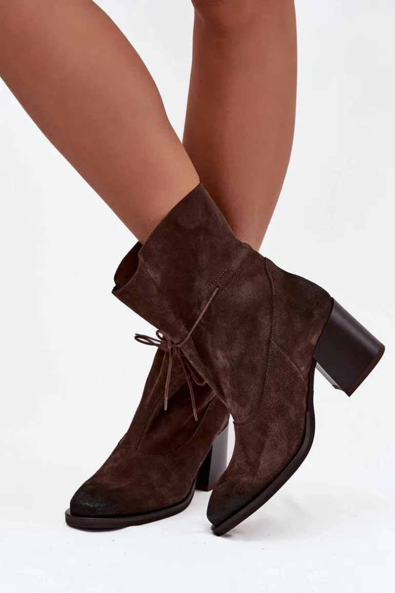 Botki damskie wykonane z naturalnego zamszu to elegancka propozycja dla kobiet ceniących styl i wygodę. Model wsuwany prezentuje się nowocześnie, a obcas w formie stabilnego słupka dodaje sylwetce lekkości i zapewnia komfort noszenia. Na cholewce znajduje się delikatny sznureczek, który pozwala dopasować botki do nogi i subtelnie podkreśla ich kobiecy charakter. To uniwersalny model, który doskonale sprawdzi się zarówno w codziennych, jak i bardziej eleganckich stylizacjach. Przy wyborze rozmiaru prosimy kierować się tabelą rozmiarów.