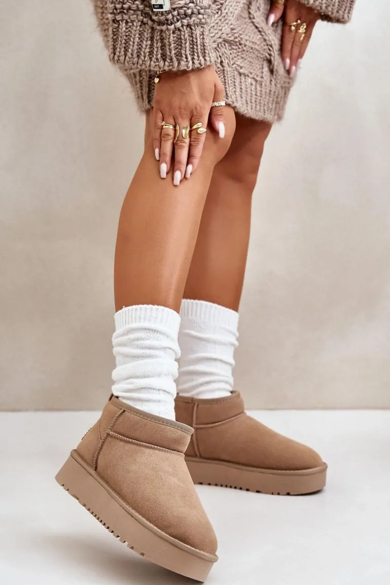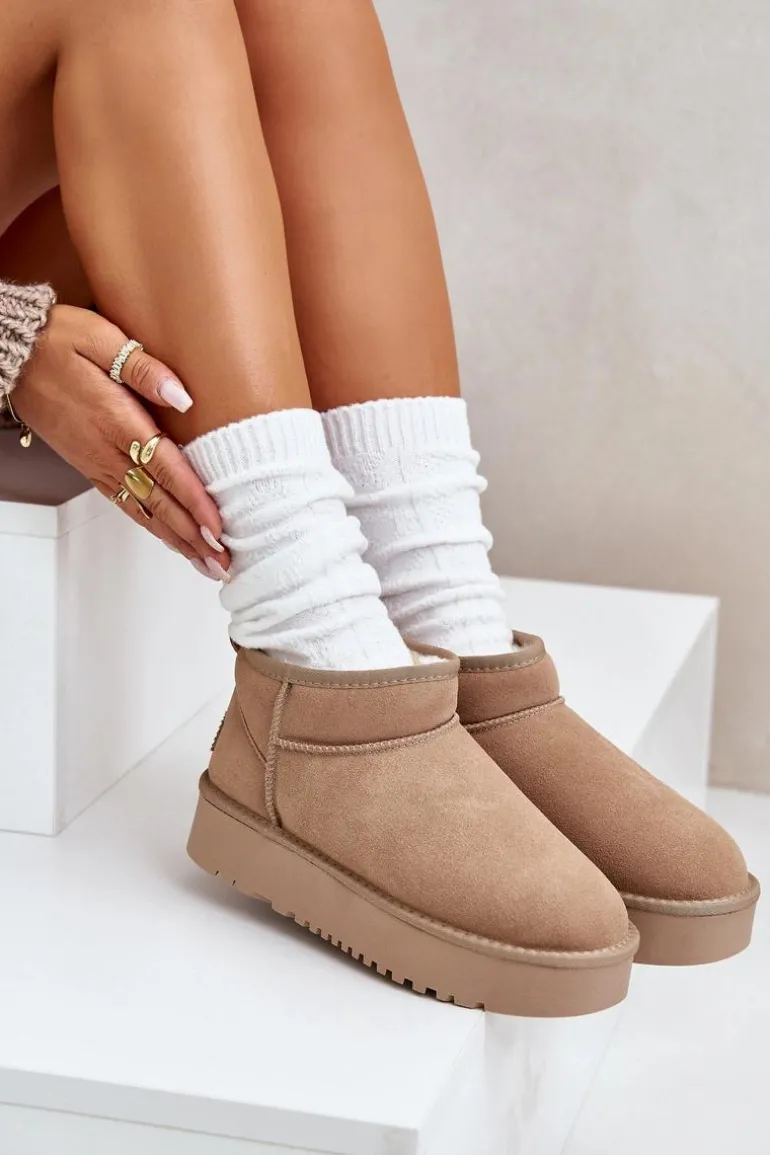 Niezwykle modne śniegowce idealnie sprawdzą się podczas mroźnych dni. Wykonane z naturalnego zamszu. Wnętrze butów zostało ocieplone grubym futerkiem. Osadzone na platformie, która skutecznie odizoluje od zimnego podłoża. Ten model koniecznie powinien znaleźć się w Twojej szafie! Przy wyborze rozmiaru prosimy sugerować się tabelą rozmiarów.