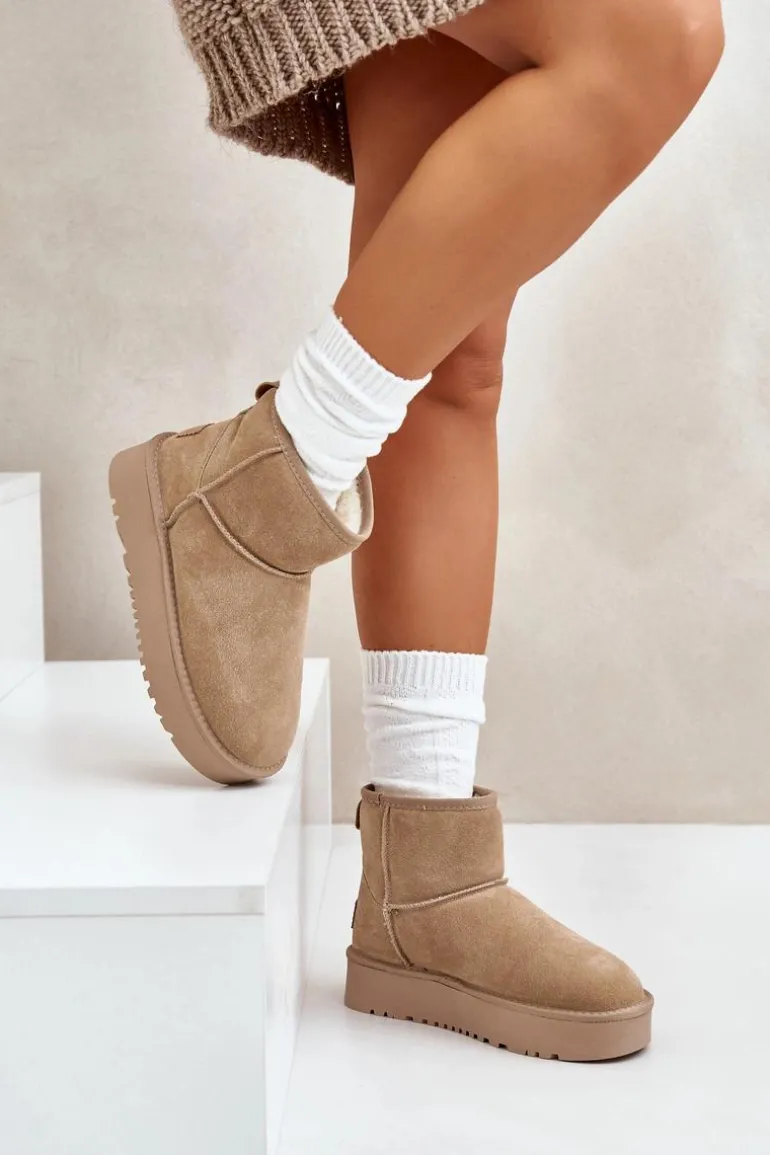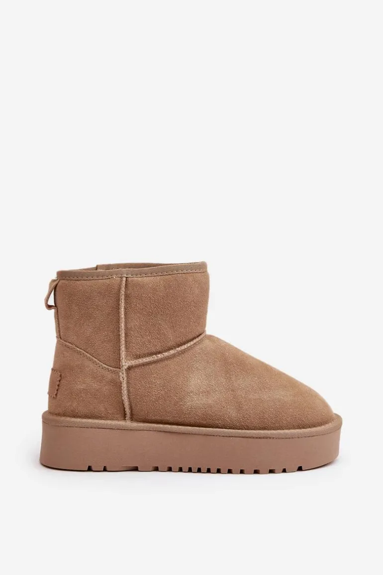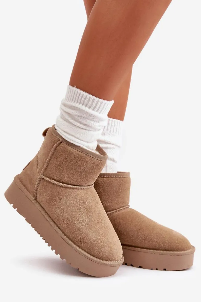 Stylowe śniegowce to doskonały wybór na mroźne dni. Wykonane z naturalnego zamszu, zapewniają elegancję i trwałość. Wnętrze butów wyściełane jest ciepłym, grubym futerkiem, które gwarantuje komfort nawet przy niskich temperaturach. Osadzone na platformie, skutecznie chronią przed chłodem podłoża. To obowiązkowa pozycja w Twojej zimowej garderobie! Przy wyborze rozmiaru prosimy sugerować się tabelą rozmiarów.
