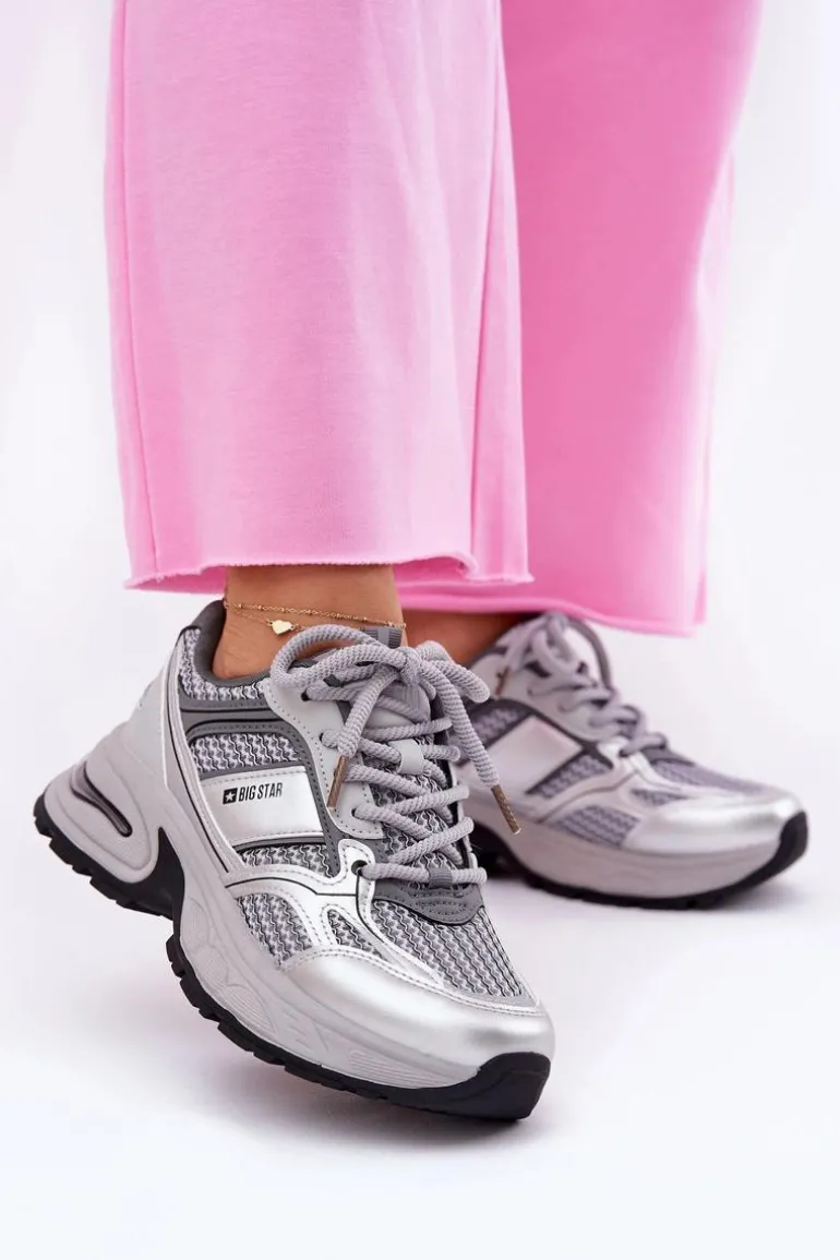 Sneakersy damskie od marki Big Star. Wykonane z połączenia eko skóry i materiału tekstylnego, to idealna propozycja dla osób ceniących styl i wygodę. Osadzone na masywnej podeszwie, zapewniają stabilność i komfort przez cały dzień. Zaokrąglone noski oferują swobodę ruchu, a miękka wkładka pokryta materiałem dba o odpowiednią amortyzację. Te sneakersy to doskonały wybór na co dzień! Przy wyborze rozmiaru prosimy sugerować się tabelą rozmiarów.