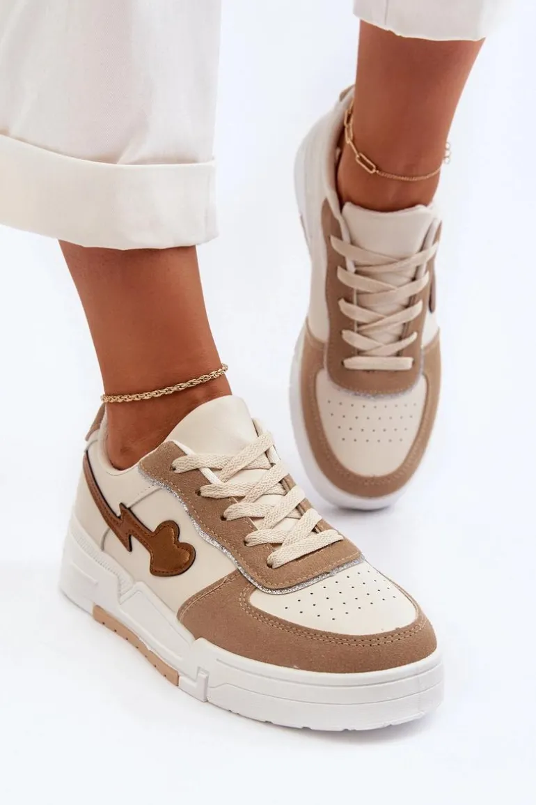 Modne sneakersy damskie wykonane z eko skóry. Osadzone na platformie, dodają nieco wzrostu, jednocześnie zapewniając stabilność i komfort. Piankowa wkładka zapewnia doskonałą amortyzację, ale również jest wyjmowana, umożliwiając łatwe czyszczenie. Klasyczne sznurowanie oraz zaokrąglone noski nadają im uniwersalny wygląd, który pasuje do wielu różnych stylizacji. Przy wyborze rozmiaru prosimy kierować się tabelą rozmiarów.